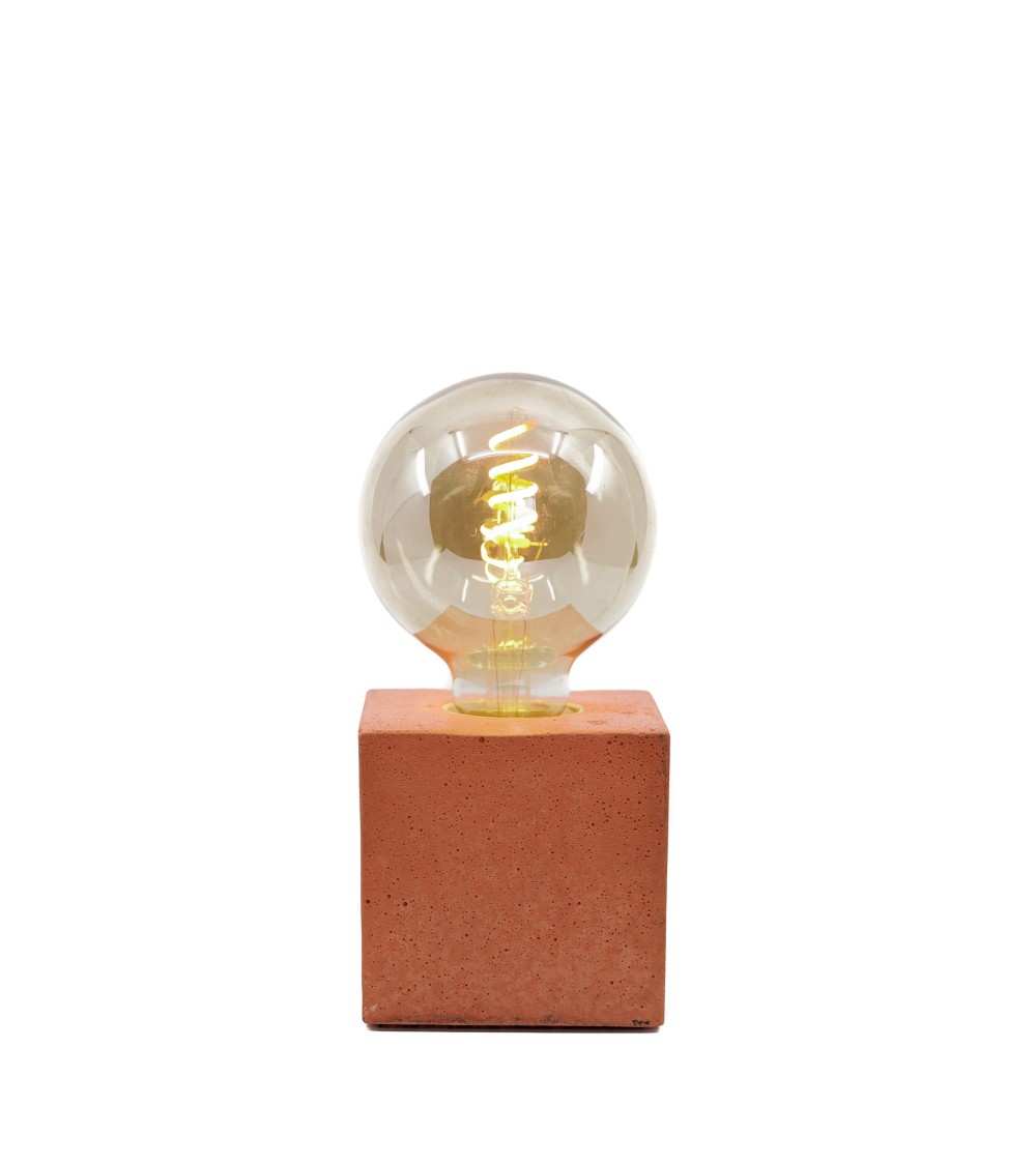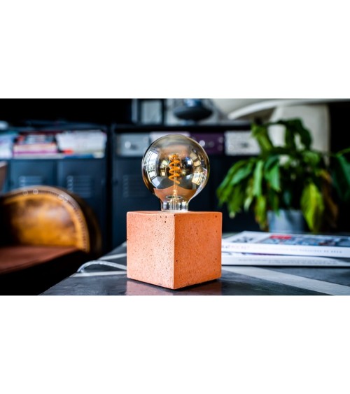 Cette lampe béton, modèle Cube, est fabriquée dans latelier de Junny à Montargis (45). Afin d'obtenir un béton coloré, la créatrice mélange son béton dans la masse à des pigments naturels. Le béton est protégé par une cire à la finition satinée qui apporte protection et brillance au béton coloré. Les éléments qui composent la lampe sont tous issus dentreprises Françaises. Cette lampe en béton, modèle Cube, est 100% made in France et fabriquée de manière artisanale. La lampe en béton cube est un modèle de luminaire béton aussi classique que moderne. Cette lampe au socle en béton à la forme cube est un incontournable de la décoration intérieure. Le socle est un cube en béton coloré dans la masse de 8 cm x 8 cm. Sa forme et sa taille, permettent à ce luminaire béton d'être positionné dans toutes les pièces de la maison. Cette lampe cube béton vous servira aussi bien de lampe à poser dans votre séjour, que de lampe de chevet ou encore de lampe de bureau. Son ampoule LED ronde à filaments, vient renforcer l'esprit industriel de la lampe béton. Cette ampoule, à la finition ambrée, procure une luminosité chaleureuse.