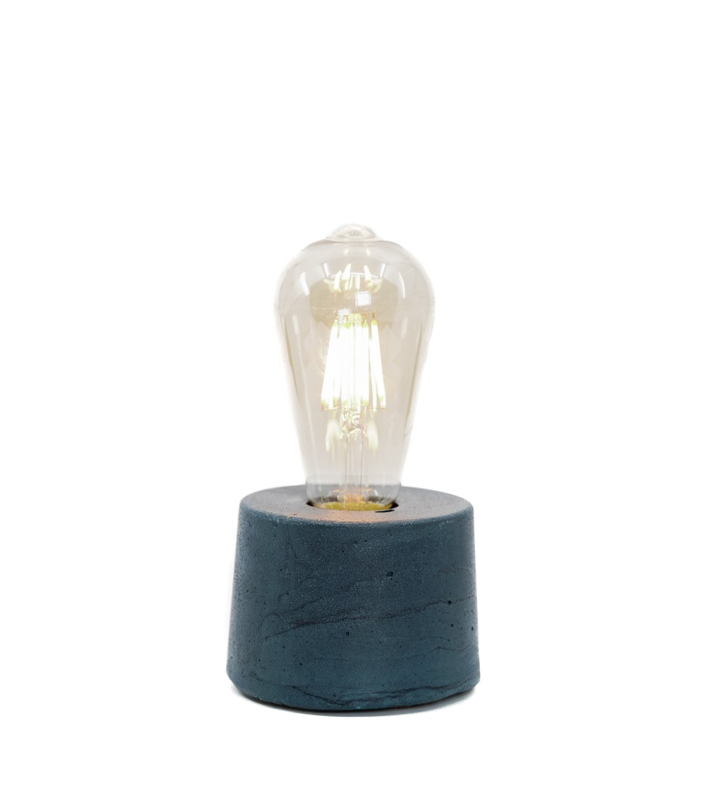 Lampe cylindrique en béton bleu pétrole fabrication artisanale