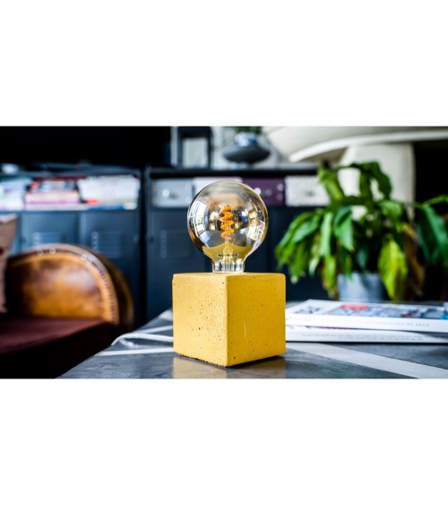 Lampe cube en béton jaune moutarde fabrication artisanale