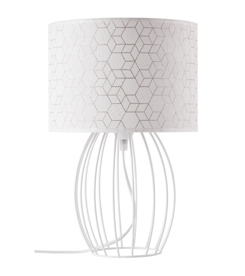 Illuminez votre intérieur avec cette belle lampe à poser de la gamme GALANCE. Ente charme scandinave et look minimaliste, cette lampe se fondra parfaitement dans votre décoration intérieure. Fabriquée en métal blanc, elle possède également un abat-jour conçu en tissu blanc pour vous procurer un éclairage homogène et chaleureux au quotidien. On adore : les motifs géométriques qui habillent cet abat-jour pour lui donner une touche scandinave hyper moderne et complètement tendance ! Cette lampe à poser trouvera sans aucun doute sa place sur une commode dans une entrée, sur un bout de canapé dans un salon ou même pourquoi pas en guise de lampe de chevet dans une chambre. Luminaire équipé d'une douille E27 compatible avec une ampoule d'une puissance maximale de 40W (ampoule non incluse). Dimensions : hauteur 37.5cm x diamètre 25cm. Existe également dans la même collection GALANCE en version suspension, spot mural ou bien lampadaire.. LES + DU PRODUIT : Matière naturelle - Matériau résistant - Ampoule à personnaliser