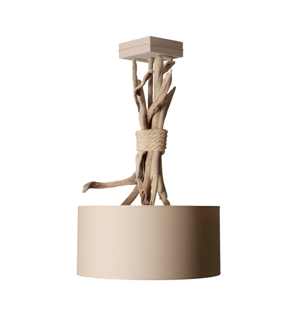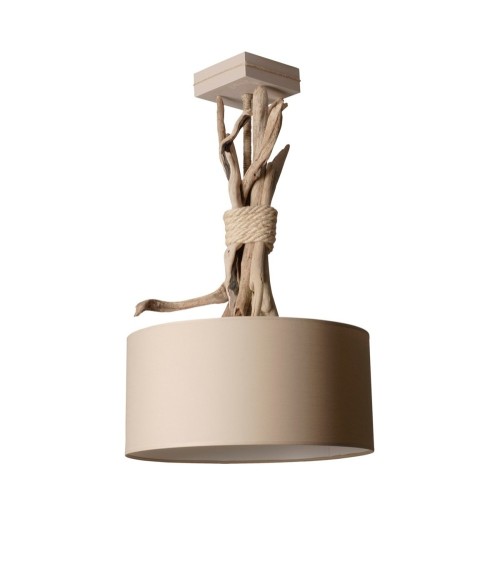 La suspension en bois flotté et cordage ESPRIT DE LAGON, originale et élégante avec son abat jour en cotonette cylindrique de 40 cm de diamèrtre est équipé d'un diffuseur opalescent pour créer un éclairage harmonieux et chaleureux, son pavillon de fixation est en panneau de fibre peint à la main et assorti à la couleur de l'abat-jour, la tige est recouverte de cordage de chanvre et ensérrée d'un fagot de bois flottés. La hauteur totale de la suspension est de 65 cm.La douille E27 nécessitera une ampoule LED de 11 watt maximum non fournie.Ce luminaire donnera un style bord de mer à votre intérieur, et trouvera aussi bien sa place dans une entrée, un couloir, un salon, une salle à manger que dans une chambre.CocArt Créations, est une marque française de luminaires dinspiration bord de mer, fabriqués à la main en France dans l'atelier Blésois, à partir de matériaux recyclés tels que les bois flottés.Notez qu'il peut y avoir quelques différences entre les visuels proposés et la lampe que vous recevrez. La fabrication artisanale confère un caractère unique à chaque création.Toutes les lampes créées par CocArt Créations sont des luminaires de classe II, pourvus de matériels électriques marqués CE. Ils sont équipés disotop, dembouts de protection, ou disodom conformément à la norme EN 60598.