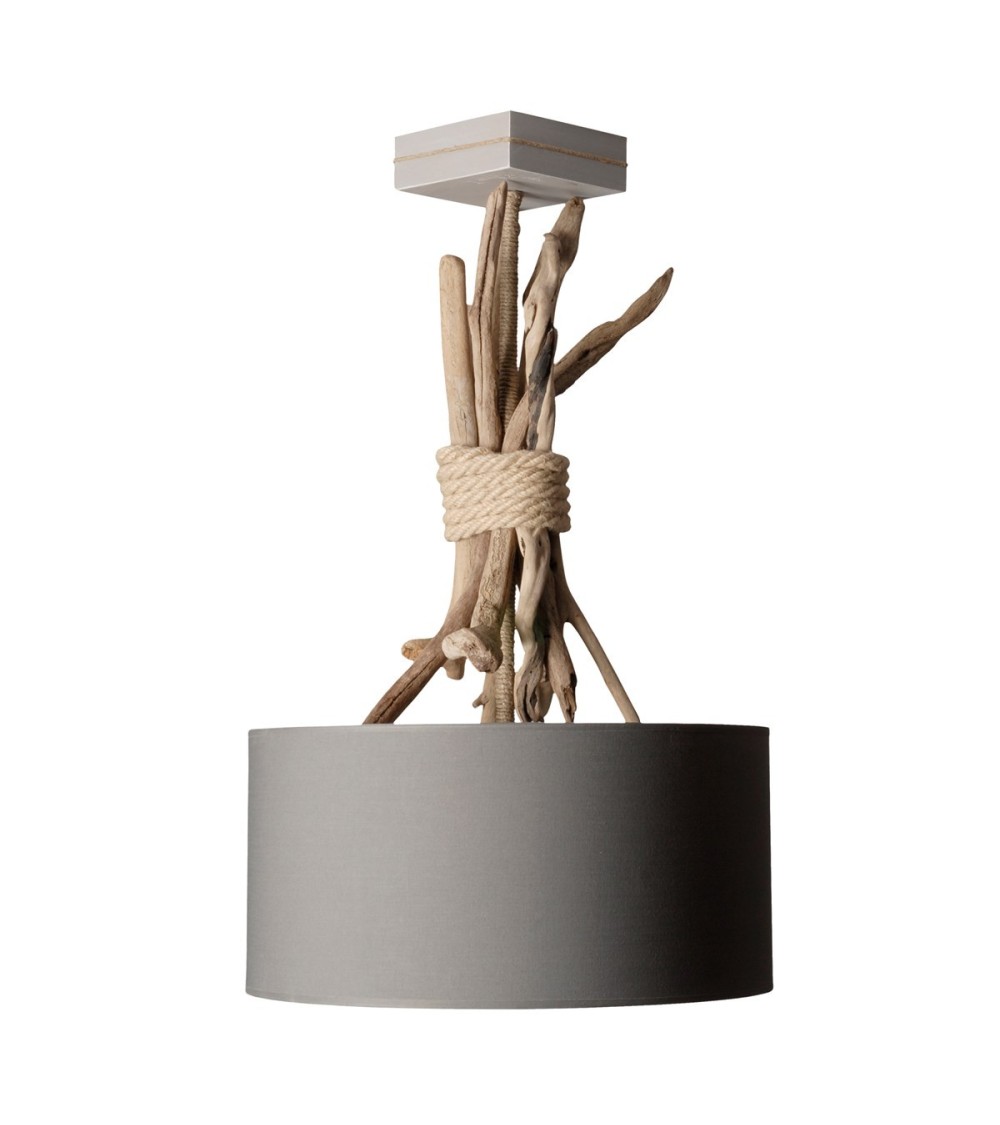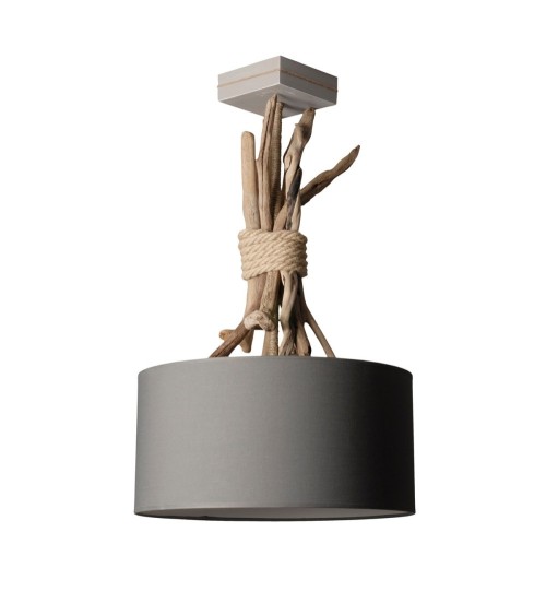 La suspension en bois flotté et cordage ESPRIT DE LAGON, originale et élégante avec son abat jour en cotonette cylindrique de 40 cm de diamèrtre est équipé d'un diffuseur opalescent pour créer un éclairage harmonieux et chaleureux, son pavillon de fixation est en panneau de fibre peint à la main et assorti à la couleur de l'abat-jour, la tige est recouverte de cordage de chanvre et ensérrée d'un fagot de bois flottés. La hauteur totale de la suspension est de 65 cm.La douille E27 nécessitera une ampoule LED de 11 watt maximum non fournie.Ce luminaire donnera un style bord de mer à votre intérieur, et trouvera aussi bien sa place dans une entrée, un couloir, un salon, une salle à manger que dans une chambre.CocArt Créations, est une marque française de luminaires dinspiration bord de mer, fabriqués à la main en France dans l'atelier Blésois, à partir de matériaux recyclés tels que les bois flottés.Notez qu'il peut y avoir quelques différences entre les visuels proposés et la lampe que vous recevrez. La fabrication artisanale confère un caractère unique à chaque création.Toutes les lampes créées par CocArt Créations sont des luminaires de classe II, pourvus de matériels électriques marqués CE. Ils sont équipés disotop, dembouts de protection, ou disodom conformément à la norme EN 60598.