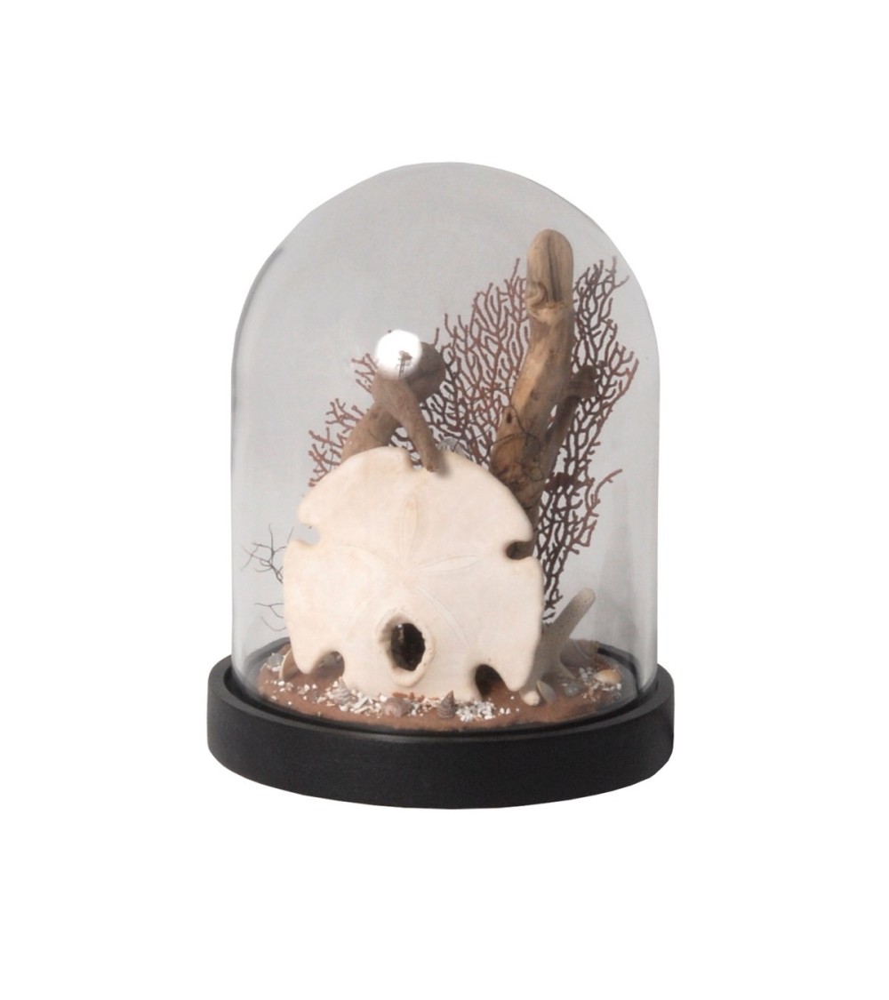 Le monde marin lumineux est un luminaire de type cabinet de curiosités. C'est une véritable représentation des fonds marins immaculés et protégés sous un globe de verre qui sera la touche déco bord de mer de votre salon. Sur les fonds sablonneux, ce sont accumulés, des coquillages, des bois flottés, des galets, des gorgones , le tout éclairé comme pour une exploration sous-marine par une veilleuse de 7 Watt fournie et montée sur une douille E14. Le cordon de 2 m est blanc muni d'un interrupteur.Le socle est en bois peint de 14 cm de diamètre et la cloche en verre mesure 20 cm de hauteur se soulève pour changer l'ampoule.CocArt Créations, est une marque française de luminaires dinspiration bord de mer, fabriqués à la main en France dans l'atelier Blésois, à partir de matériaux recyclés tels que les bois flottés.Notez qu'il peut y avoir quelques différences entre les visuels proposés et la lampe que vous recevrez. La fabrication artisanale confère un caractère unique à chaque création.Toutes les lampes créées par CocArt Créations sont des luminaires de classe II, pourvus de matériels électriques marqués CE. Ils sont équipés disotop, dembouts de protection, ou disodom conformément à la norme EN 60598.