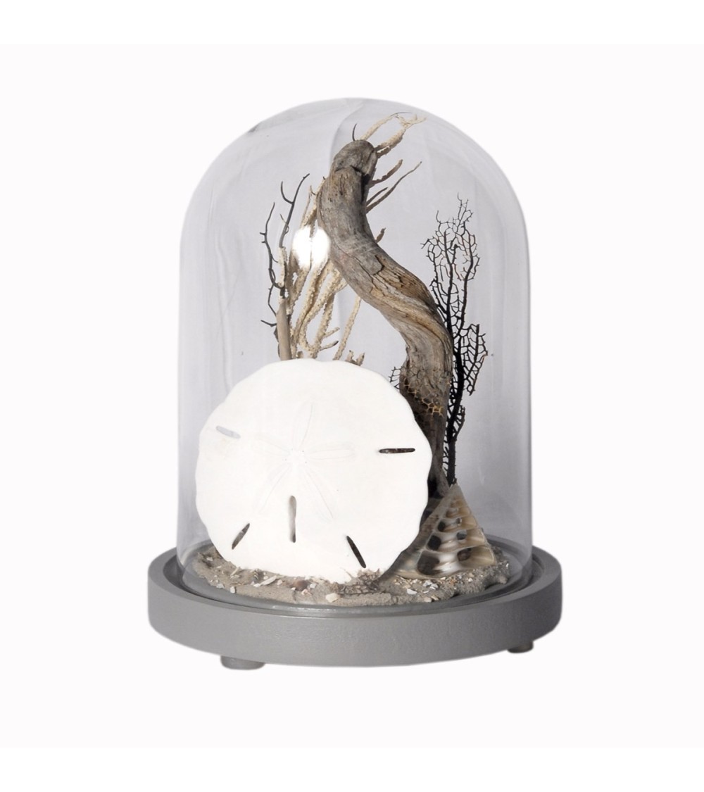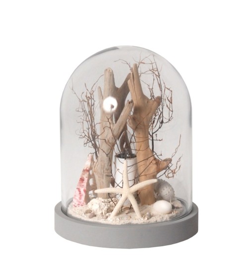 Le monde marin lumineux est un luminaire de type cabinet de curiosités. C'est une véritable représentation des fonds marins immaculés et protégés sous un globe de verre qui sera la touche déco bord de mer de votre salon. Sur les fonds sablonneux, ce sont accumulés, des coquillages, des bois flottés, des galets, des gorgones , le tout éclairé comme pour une exploration sous-marine par une veilleuse de 7 Watt fournie et montée sur une douille E14. Le cordon de 2 m est blanc muni d'un interrupteur.Le socle est en bois peint de 14 cm de diamètre et la cloche en verre mesure 20 cm de hauteur se soulève pour changer l'ampoule.CocArt Créations, est une marque française de luminaires dinspiration bord de mer, fabriqués à la main en France dans l'atelier Blésois, à partir de matériaux recyclés tels que les bois flottés.Notez qu'il peut y avoir quelques différences entre les visuels proposés et la lampe que vous recevrez. La fabrication artisanale confère un caractère unique à chaque création.Toutes les lampes créées par CocArt Créations sont des luminaires de classe II, pourvus de matériels électriques marqués CE. Ils sont équipés disotop, dembouts de protection, ou disodom conformément à la norme EN 60598.