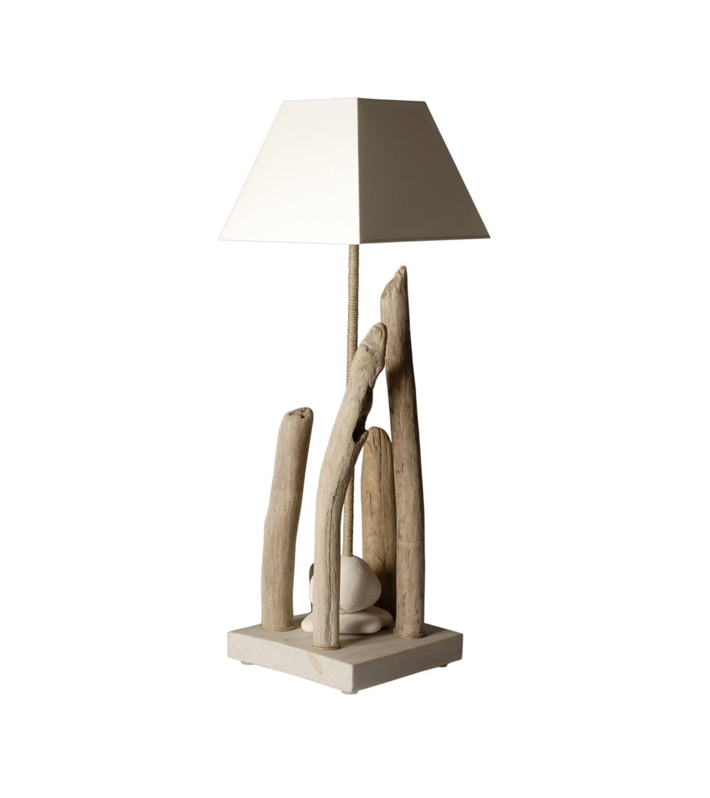 Cette lampe à poser NATURE est une bouffée d'air marin pour votre salon, idéale sur une console ou buffet. Avec sa base de 23 cm² qui est en sapin du nord veilli et patiné et son abat-jour de 24 cm² de forme pyramidale qui est en cotonette de couleur blanc cassé. Le corps de la lampe est constitué d'une tige recouverte de cordage, de galets de lestage et de bois flottés en élévation. La hauteur totale du luminaire (de la base à l'abat-jour) est de 80cm. Elle est disponible en 2 tailles (65 ou 80 cm) et 2 formes (élévation ou empilement)Le cordon de 2 m est blanc avec un interrupteur. La douille E27 pourra accueillir une ampoule Led 10 watt maximum, non fournie.CocArt Créations, est une marque française de luminaires dinspiration bord de mer, fabriqués à la main en France dans l'atelier Blésois, à partir de matériaux recyclés tels que les bois flottés.Notez qu'il peut y avoir quelques différences entre les visuels proposés et la lampe que vous recevrez. La fabrication artisanale confère un caractère unique à chaque création.Toutes les lampes créées par CocArt Créations sont des luminaires de classe II, pourvus de matériels électriques marqués CE. Ils sont équipés disotop, dembouts de protection, ou disodom conformément à la norme EN 60598.