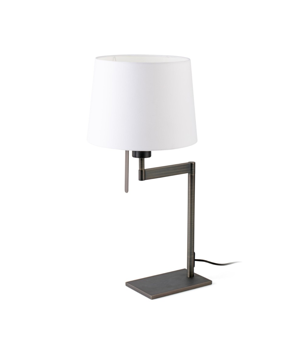 Lampe avec abat-jour Faro Artis Bronze Métal 68488. - Hauteur : 55 cm. - Largeur : 21 cm. - Profondeur : 18 cm. - Puissance : 15 . - Culot : E27 . - IP : 20 . - Nombre de point lumineux : 1 . - Classe d'isolation : 2 . - Voltage : 220 V. - Poids brut : 2,05 kg.