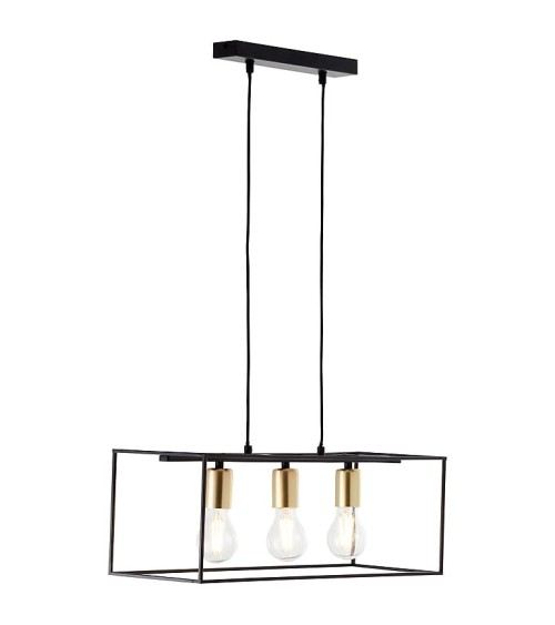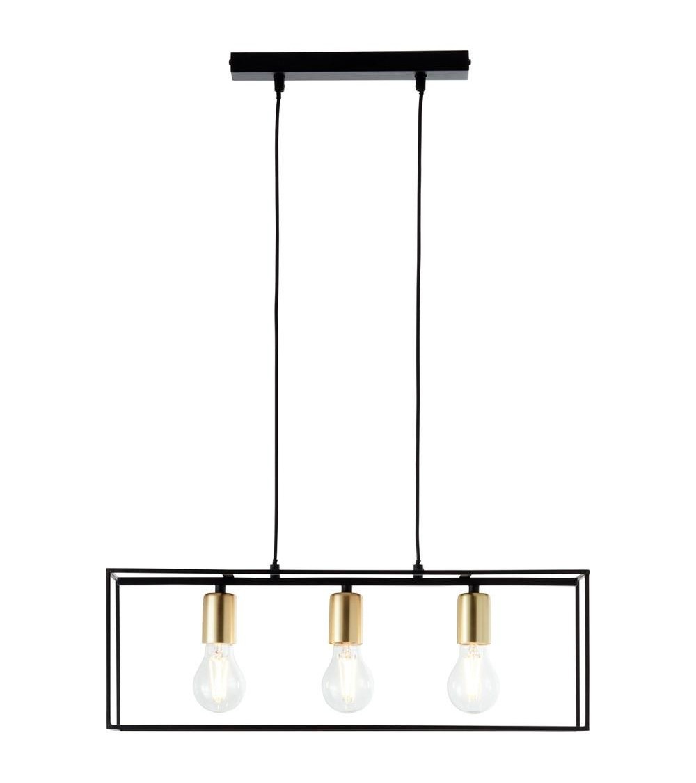 Suspension 3 lampes design Brilliant Arica Noir Métal 92747/06. - Hauteur : 85,5 cm. - Longueur : 60 cm. - Profondeur : 20 cm. - Puissance : 180 . - Culot : E27 . - IP : 20 . - Nombre de point lumineux : 3 . - Poids brut : 1,458 kg. - Classe d'isolation : 1 . - Hauteur réglable : oui . - Voltage : 220 V.