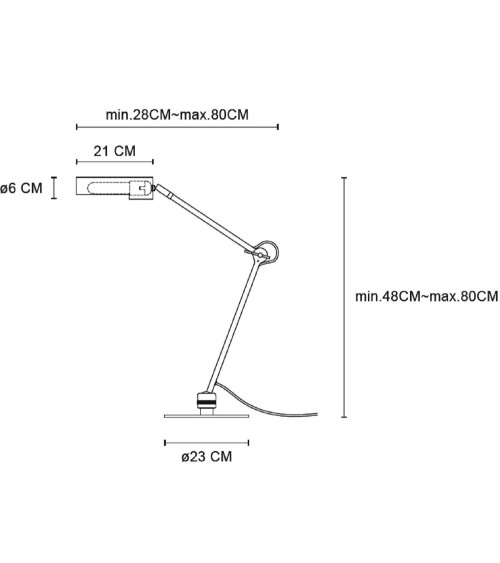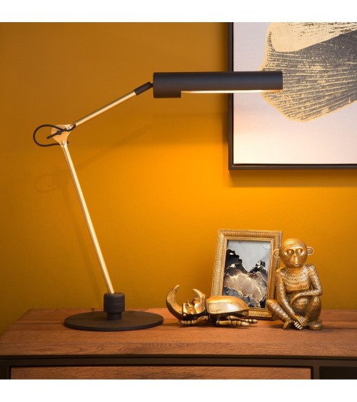 Un charme design et un look contemporain, craquez pour cette belle lampe de bureau de la collection SLENDER. Fabriquée entièrement en métal dans un beau mariage de couleur laiton et noir, elle instaurera une touche chaleureuse moderne dans votre décoration intérieure. Parfaite sur votre bureau pour illuminer vos journées de travail ou vos activités quotidiennes, cette lampe trouvera aussi sans aucun doute sa place dans un coin de votre salon ou votre salle à manger en éclairage d'accompagnement, ou même pourquoi pas en guise de lampe de chevet dans votre chambre à coucher. Le plus ? Pour un éclairage 100% fonctionnel au quotidien, cette lampe possède un abat-jour inclinable et rotatif à adapter en fonction de vos besoins au cours de la journée. Luminaire équipé d'une douille E27 compatible avec une ampoule d'une puissance maximale de 25W (ampoule non incluse). Dimensions : hauteur ajustable entre 48 et 80cm x profondeur entre 28 et 80cm x longueur source lumineuse 21cm x diamètre source lumineuse 6cm x diamètre socle 23cm x longueur câble 180cm. Interrupteur sur câble d'alimentation. Existe également dans la même collection SLENDER en version lampadaire. Les plus du produit : Matériau résistant - Effets lumineux - Ampoule à personnaliser Caractéristiques : - Douille : E27 - Puissance : 25W - IP : 20 - Matière : metal