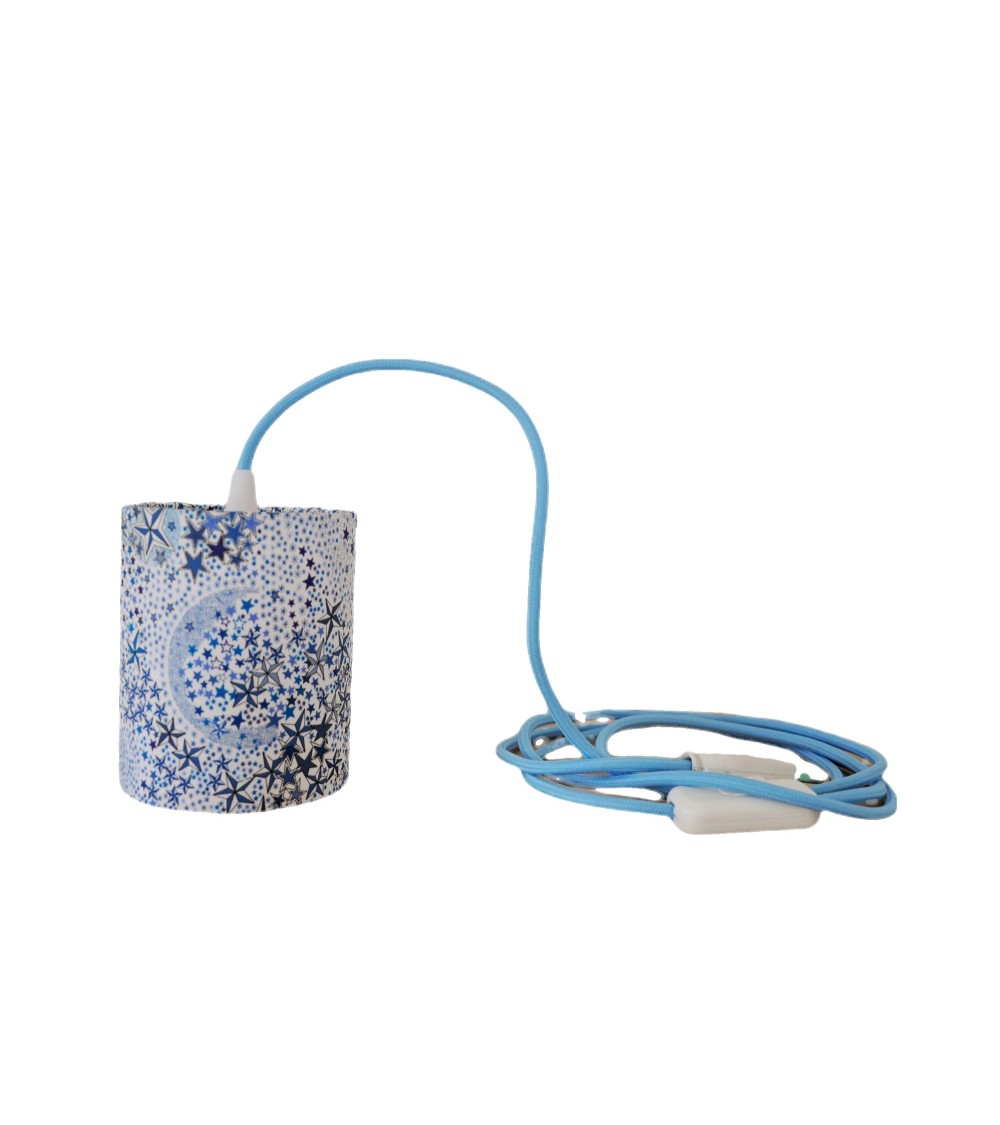 La lampe baladeuse est idéale en lampe de chevet ou en lampe d'appoint. Pour l'accrocher, il suffit d'enrouler le cordon électrique autour d'une patère , d'un crochet.La lampe baladeuse est composée : - d'un abat-jour de diamètre 10 cm - d'un cordon éléctrique de couleur de 2m30 avec prise blanche, interrupteur blanc, douille E14 blancheCette lampe est prête à être branchée , vendue sans ampouleCette lampe est une création entièrement réalisée de façon artisanale. Chaque création est unique.Elle sera envoyée avec le plus grand soin, bien protégée dans un emballage adapté.
