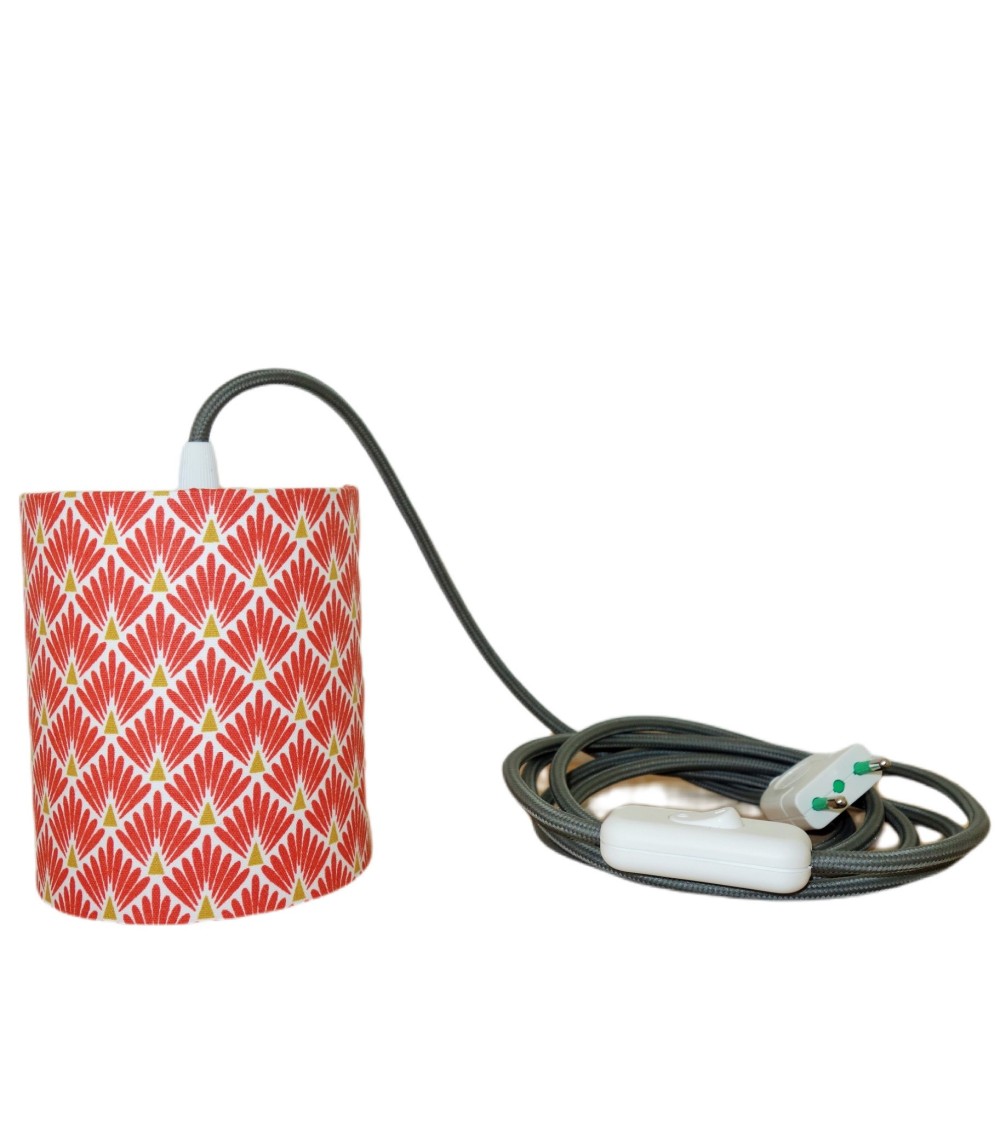 La lampe baladeuse est idéale en lampe de chevet ou en lampe d'appoint. Pour l'accrocher, il suffit d'enrouler le cordon électrique autour d'une patère , d'un crochet.La lampe baladeuse est composée : - d'un abat-jour de diamètre 10 cm - d'un cordon éléctrique de couleur de 2m30 avec prise blanche, interrupteur blanc, douille E14 blancheCette lampe est prête à être branchée , vendue sans ampouleCette lampe est une création entièrement réalisée de façon artisanale. Chaque création est unique.Elle sera envoyée avec le plus grand soin, bien protégée dans un emballage adapté.
