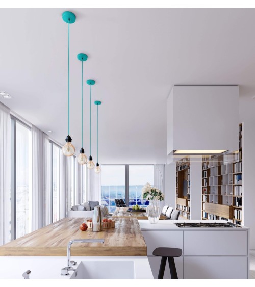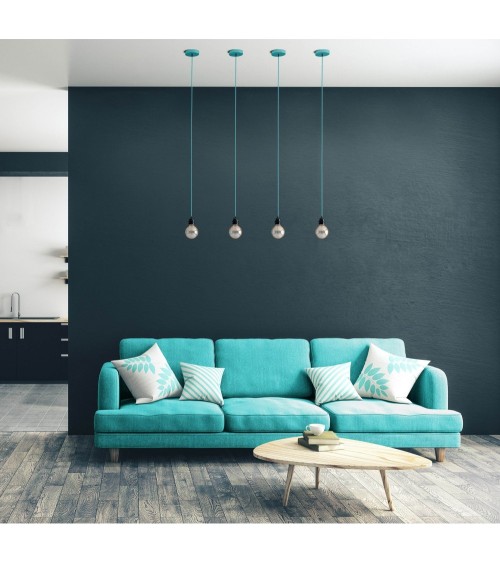 Suspension 1 fil électrique en tissu turquoise 2,5m douille noire