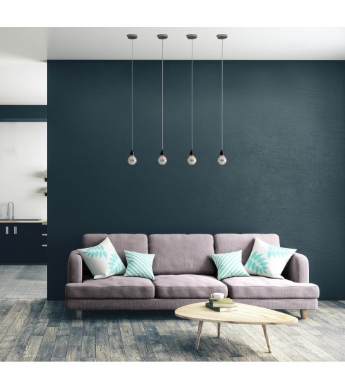 Suspension 1 fil électrique en tissu gris 2,5m douille noire
