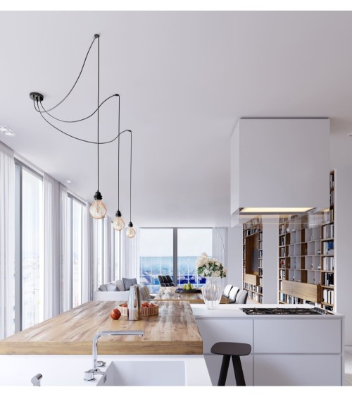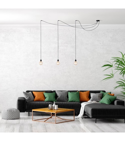 DESIGN MODERNE ET INTEMPOREL : Lignes élégantes et épurées, la suspension Hang 3 est un mélange subtile dacier et de fil électrique tissé. Ce lustre trouvera idéalement sa place dans une chambre, un salon, une cuisine ou un bureau.CHOISISSEZ VOTRE STYLE : Utilisez simplement 3 belles ampoules Edison à filaments ou Led pour en faire une suspension industrielle. Transformez-là en lampe rétro, vintage en choisissant parmi les 8 coloris de cages Hoopzi ou accessoirisez avec des abat jour.MODULABLE : Avec une longueur de câbles électriques de 2,5 MÈTRES, vous serez libre dajuster la hauteur déclairage à votre convenance mais également de déporter vos points de lumières ou vous le souhaitez sur votre plafond grâce aux 3 crochets en silicone fournis.FIXEZ SANS PERCER : Si votre foyer est équipé avec un dispositif de connexion luminaire (DCL), une simple vis fournie suffira pour fixer Hang 3. Sinon, la plaque de fixation sadaptera à toutes les situations.HOOPZI LA FRENCH TOUCH QUALITATIVE : Vous apprécierez la qualité de notre luxueux câble électrique tissé ainsi que notre pavillon en acier premium. Tous les produits Hoopzi sont certifiés CE et ont été testés par un organisme indépendant FRANÇAIS.