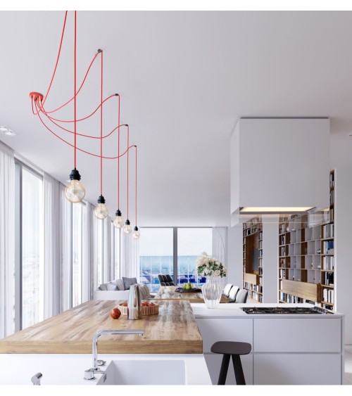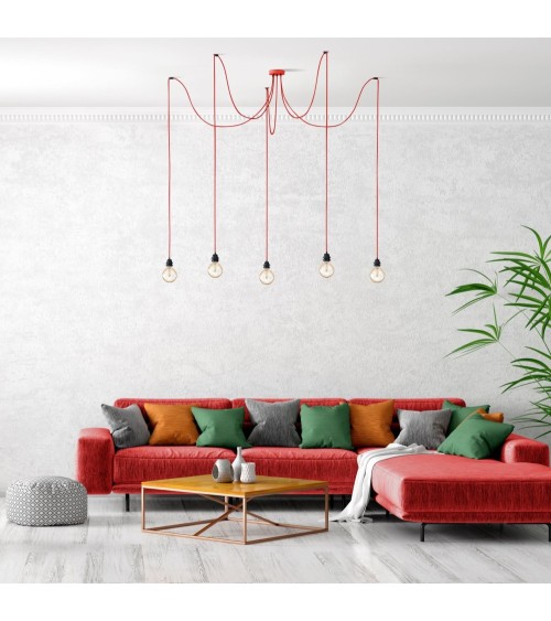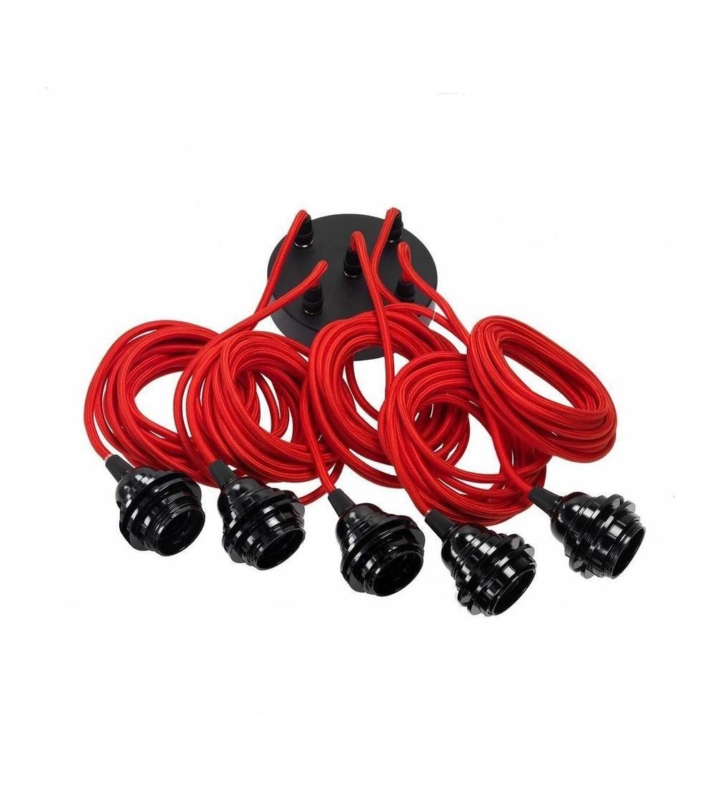 Suspension 5 fils électriques en tissu rouge 3,5m douille noire