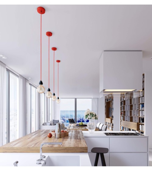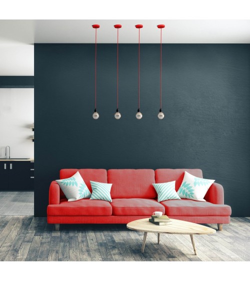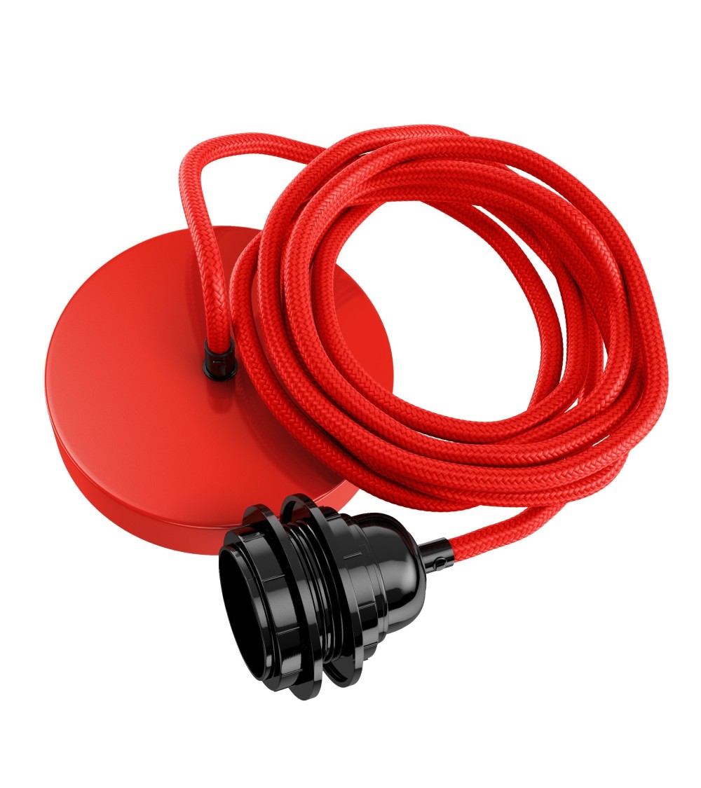 Suspension 1 fil électrique en tissu rouge 2,5m douille noire