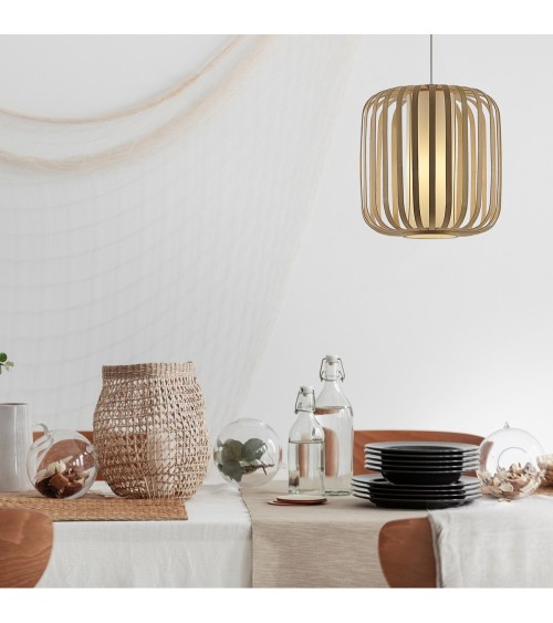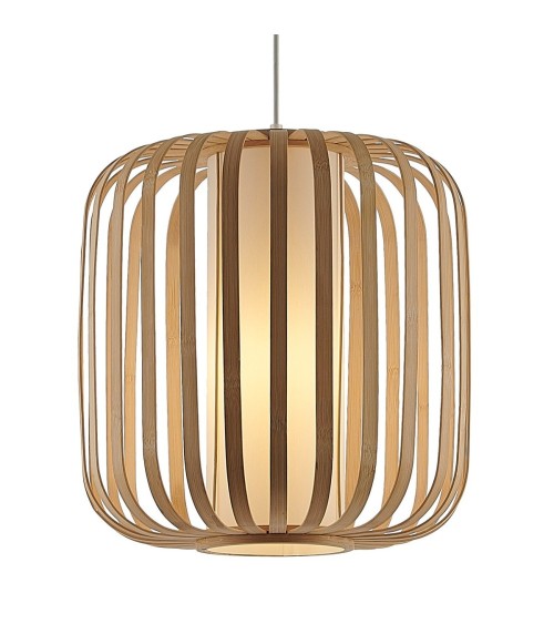 Une suspension bambou nature et moderne dans notre salon, on dit oui ! Conçue en bambou naturel, la suspension BAND révèle un design épuré très élégant. De simples bandes de bambou très fines composent son abat-jour de 36 cm de diamètre. En son centre, le diffuseur en papier renferme l'ampoule. Ce tube discret vient filtrer la lumière émise par l'ampoule pour générer un éclairage doux et homogène dans toute la pièce, jouant avec les bandes de bambou pour créer des effets lumineux sublimes. On aime : son look contemporain mixé à un design en matières naturelles. Cette suspension est compatible avec une ampoule E27 de 60 watts. Existe dans la même série en lampadaire et lampe de sol pour un total look nature dans la déco. Hauteur 40cm x hauteur totale (avec câble) 150cm. Les plus du produit : Matière naturelle - Effets lumineux - Lumière tamisée Caractéristiques : - Douille : E27 - Puissance : 60W - IP : 20 - Matière : bamboo