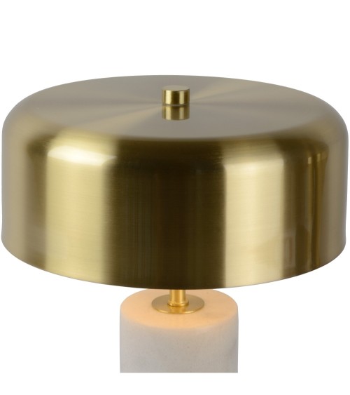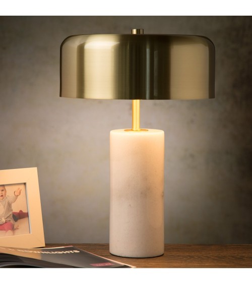 Moderne, élégante et tendance, on adore cette lampe de la collection MIRASOL. Conçue sur un pied fabriqué dans un superbe marbre blanc, cette lampe à poser possède également un abat-jour en métal dans une belle couleur or pour vous procurer une lumière quotidienne chaleureuse. Idéale en éclairage d'accompagnement dans votre salon ou votre salle à manger, MIRASOL trouvera également sa place sur une commode dans votre entrée pour un rendu plus fonctionnel ou bien pourquoi pas même en guise de lampe de chevet dans votre chambre à coucher. Le plus ? Cette lampe MIRASOL possède un bouton variateur d'intensité lumineuse sur son câble d'alimentation pour vous permettre de faire varier l'intensité de votre éclairage en fonction de vos envies et de vos besoins au cours de la journée. Luminaire équipé de trois douilles G9 compatibles avec trois ampoules d'une puissance maximale de 7W chacune, soit 3x7W (ampoules non incluses). Dimensions : hauteur 36.5cm x hauteur abat-jour 10cm x diamètre abat-jour 25cm x diamètre pied 9cm x longueur câble d'alimentation 180cm. Existe également dans la même collection MIRASOL en version coloris marbre noir. Les plus du produit : Matériau résistant - Effets lumineux - Ampoule à personnaliser Caractéristiques : - Douille : G9 - Puissance : 7W - IP : 20 - Matière : marble