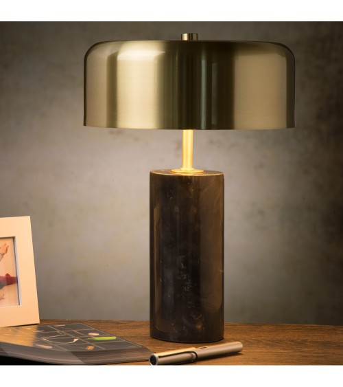 Moderne, élégante et tendance, on adore cette lampe de la collection MIRASOL. Conçue sur un pied fabriqué dans un superbe marbre noir, cette lampe à poser possède également un abat-jour en métal dans une belle couleur or pour vous procurer une lumière quotidienne chaleureuse. Idéale en éclairage d'accompagnement dans votre salon ou votre salle à manger, MIRASOL trouvera également sa place sur une commode dans votre entrée pour un rendu plus fonctionnel ou bien pourquoi pas même en guise de lampe de chevet dans votre chambre à coucher. Le plus ? Cette lampe MIRASOL possède un bouton variateur d'intensité lumineuse sur son câble d'alimentation pour vous permettre de faire varier l'intensité de votre éclairage en fonction de vos envies et de vos besoins au cours de la journée. Luminaire équipé de trois douilles G9 compatibles avec trois ampoules d'une puissance maximale de 7W chacune, soit 3x7W (ampoules non incluses). Dimensions : hauteur 36.5cm x hauteur abat-jour 10cm x diamètre abat-jour 25cm x diamètre pied 9cm x longueur câble d'alimentation 180cm. Existe également dans la même collection MIRASOL en version coloris marbre blanc. Les plus du produit : Matériau résistant - Effets lumineux - Ampoule à personnaliser Caractéristiques : - Douille : G9 - Puissance : 7W - IP : 20 - Matière : marble