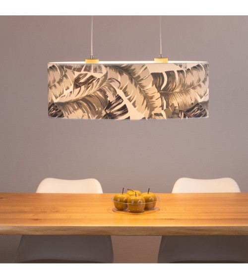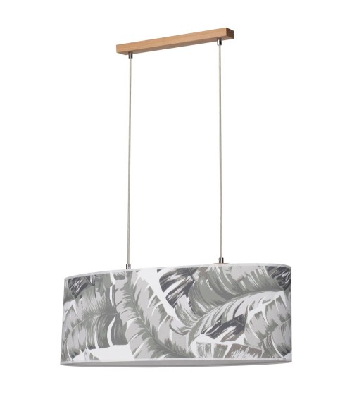 On craque pour le charme exotique de cette belle suspension barre de la collection SAFARI KHAKI. Conçue sur une structure en bois de chêne naturel, elle possède un superbe abat-jour de forme ovale fabriqué en papier-peint. Ses motifs inspiration jungle pensés dans des nuances vertes douces et chaleureuses donneront une touche moderne hyper fraîche et tendance à votre décoration intérieure. Idéale dans votre salon pour une ambiance chaleureuse ou bien au-dessus de votre table à manger pour illuminer vos moments de partage, cette suspension barre SAFARI KHAKI trouvera également sans aucun doute sa place dans une grande entrée ou même pourquoi pas une chambre à coucher. Luminaire équipé de deux douilles E27 compatibles avec deux ampoules d'une puissance maximale de 40W chacune, soit 2x40W (ampoules non incluses). Dimensions : hauteur 140cm (hauteur réglable) x hauteur abat-jour 25cm x longueur 70cm x largeur 25cm. Existe également dans la même collection SAFARI KHAKI en version suspension simple, lampe, lampadaire, spot simple, spot double ou encore réglette 4 spots. Les plus du produit : Matière naturelle - 2 sources lumineuses - Ampoule à personnaliser Caractéristiques : - Douille : E27 - Puissance : 40W - IP : 20 - Matière : paper