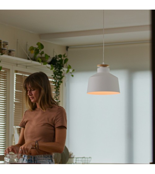 La lampe suspendue Nube de Forlight est de style scandinave et présente des finitions blanches et des détails en bois clair, donnant un aspect naturel et organique à la pièce. Il s'agit d'une pièce décorative idéale pour les pièces de toute taille.Cette lampe avec des détails en bois clair naturel est idéal pour tous les types de pièces de style nordique et minimaliste moderne. Elle s'intègre parfaitement dans les salons, où il peut devenir une pièce décorative supplémentaire, car sa hauteur est réglable et peut être abaissée pour le garder plus en vue. En revanche, si vous recherchez une option plus discrète, il vous suffit de le surélever pour le mettre hors de vue tout en préservant pleinement sa fonctionnalité. En raison de sa taille, il trouvera également sa place dans les chambres principales, les bureaux et les couloirs.Son type de lumière est personnalisable car il dépend de l'ampoule utilisée. Avec une ampoule chaude, vous obtiendrez une atmosphère confortable et détendue, et avec une ampoule neutre ou plus froide, vous obtiendrez une atmosphère sobre et propre.Matériaux de qualité : La structure de cette lampe nordique est faite d'métal, ce qui lui confère une résistance exceptionnelle aux chocs et lui assure une longue durée de vie, et de détails en bois naturel.Facile à installer : Aucune connaissance en électricité ni aucun outil professionnel n'est nécessaire pour installer ce plafonnier. Ellel suffit de suivre les instructions fournies avec l'article. Elle nécessite une ampoule LED avec douille E27, non incluse avec le produit.Garantie de qualité: La lampe suspendue bénéficie d'une garantie de 5 ans par Forlight. Tous les produits de cette marque ont été testés pour garantir des performances optimales.