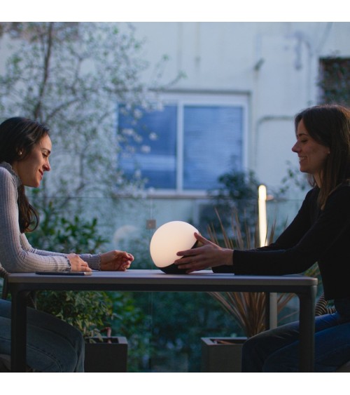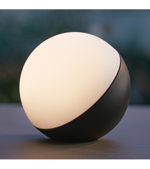 La lampe portable Sphere de couleur noire est idéale en tant que luminaire dappoint et polyvalent. Elle dispose dune batterie longue durée qui peut être rechargée via un port USB, ce qui permet de transporter ou de déplacer le luminaire sans avoir à le brancher sur le secteur.La lampe Sphere peut servir déclairage dappoint au salon, sur une table de chevet ou un bureau, ou encore en terrasse et dans le jardin pour obtenir un éclairage chaleureux et design en tout lieu. Très résistant, ce modèle assure une grande qualité déclairage, garantissant une utilisation prolongée.Lintensité lumineuse est réglable par un système tactile qui mémorise le dernier niveau dintensité appliqué lors de sa précédente utilisation. La lampe offre 3 modes dintensité (25 %, 50 % et 100 %). La durée de vie de la batterie dépend du niveau dintensité : 5 heures en mode maximal et 20 heures si 25 % de sa capacité lumineuse est utilisée. La lampe est livrée avec son propre câble USB-C pour la recharge.Elle est dotée dun indice de protection extérieur IP44, ce qui permet de lutiliser en terrasse ou au jardin. Elle est fabriquée en polycarbonate et en plastique.