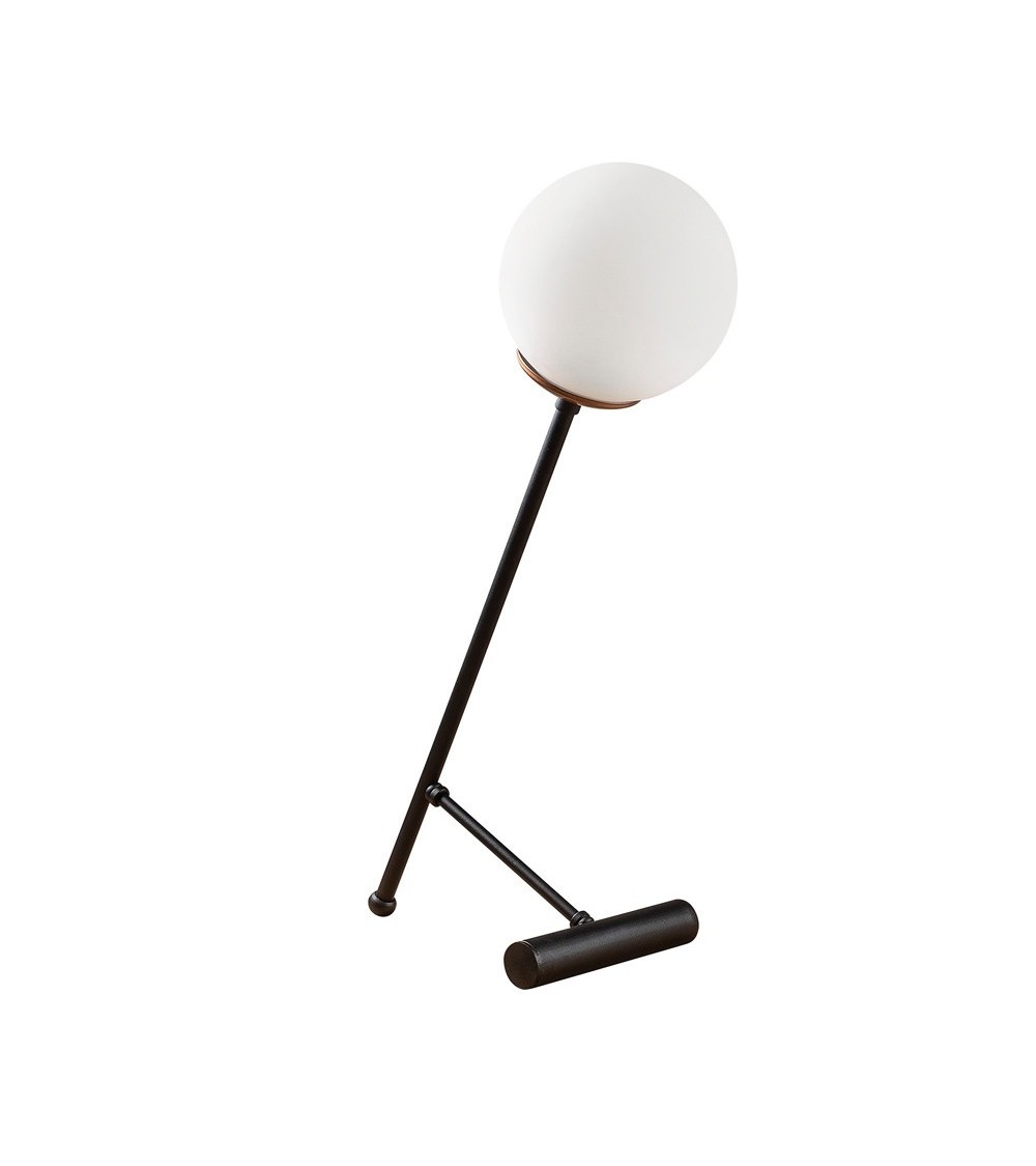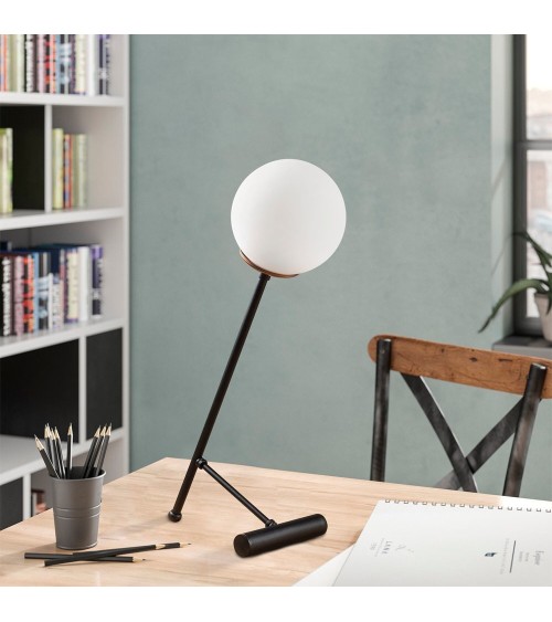 Lampe de table noire avec sphère en verre opale