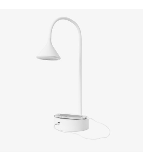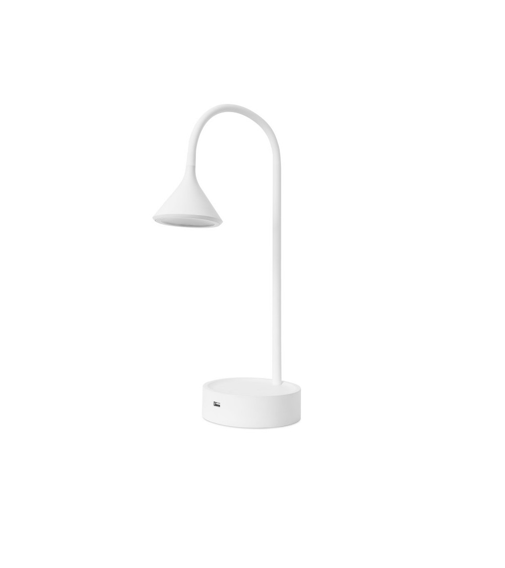 La lampe de bureau LED Ding est synonyme de commodité et de design. Avec sa tête réglable et son bras totalement flexible, vous pouvez diriger la lumière là où vous le souhaitez.Sa source lumineuse LED intégrée fournit une lumière à température de couleur blanc chaud de 3 000 K qui ne provoque pas déblouissement, idéal pour travailler confortablement et agréablement. Son diffuseur en polycarbonate répartit le flux lumineux de manière homogène pour un grand confort visuel, qualité indispensable dans une lampe de bureau.Il sagit dune lampe à poser moderne au design contemporain et minimaliste. Grâce à ses formes galbées, élégantes et tout en simplicité, elle fonctionne très bien comme un élément décoratif de nimporte quel type de bureau.Elle comprend un port USB pratique et fonctionnel pour connecter tout appareil électronique. Vous pourrez charger votre téléphone portable de la manière la plus confortable et la plus sûre qui soit. Tous les produits Forlight bénéficient dune garantie de qualité de 5 ans.