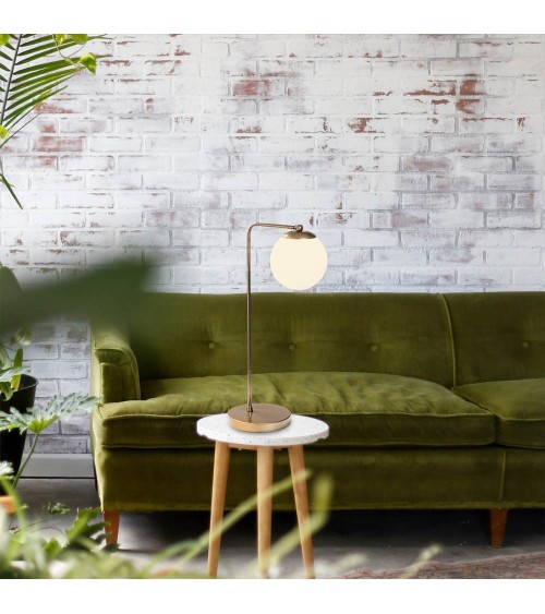 Lampe de table minimaliste en cuivre avec sphère en verre opale