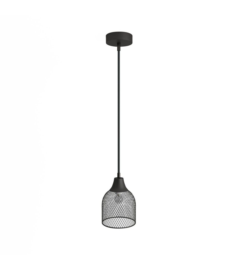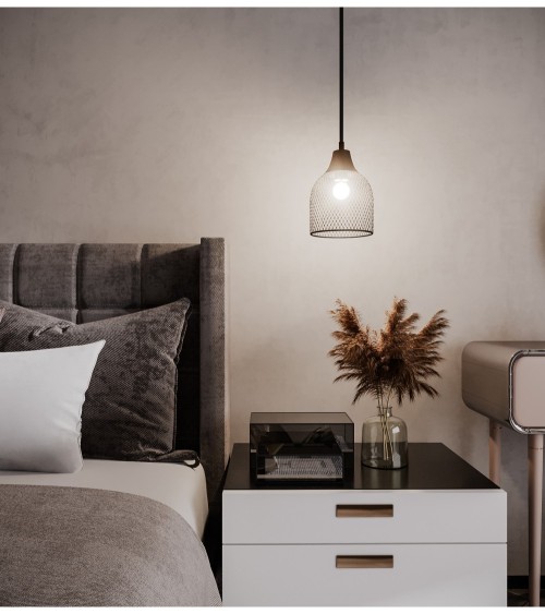 Luminaire suspension design Villadoro, en métal ajouré noirUn look un brin rétro, les lignes stylées du loft, un esprit joueur qui installe de belles ombres dans votre pièce : ce sont les félicitations du jury que gagne la suspension en métal noir ajouré Villadoro. Idéale pour apporter un vent de modernité chic dans la maison, cette suspension design fait lunanimité.Métal noirDimensionsDiamètre abat-jour : 14 cm x 19 cmLongueur maximale : 120 cmLa suspension design en métal ajouré joue avec la lumièreLa suspension en métal noir Villadora est un luminaire industriel design comme on les aime : elle peut trouver sa place à peu près dans toutes les pièces de la maison?; elle propose un éclairage agréable et de bonne intensité?; elle a du style, contagieux dans le décor. En un mot, elle fait doublement son travail, apporter une luminosité adaptée et parfaire votre décoration intérieure dinspiration loft. La cerise sur le gâteau, cest labat-jour en métal noir ajouré de cette suspension au design factory. Aux lignes épurées, viennent sajouter les dessins dombre et lumière qui se projettent sur les murs. Effet dambiance assuré?!Villadoro, suspension design polyvalenteCe que lon peut reconnaître à légard de la suspension design Villadoro, cest quelle a du caractère tout en étant facile à intégrer dans votre intérieur. Très tendance, chic, elle contribue à mettre en lumière un loft tout autant quun décor bohème ou contemporain. Avec une silhouette qui respire léquilibre, la suspension en métal ajouré noir vous permet de jouer la carte de la modernité stylée, dans une pièce de vie, salon, séjour, salle à manger, aussi efficacement que dans un bureau ou une entrée. Équipée dun fil de 120 cm, il vous suffit de labaisser au-dessus dun ensemble canapé-fauteuil pour que le décor prenne de la force. Dans les grands volumes avec plusieurs luminaires design dans la pièce, elle sassocie à la suspension triple Villadoro.