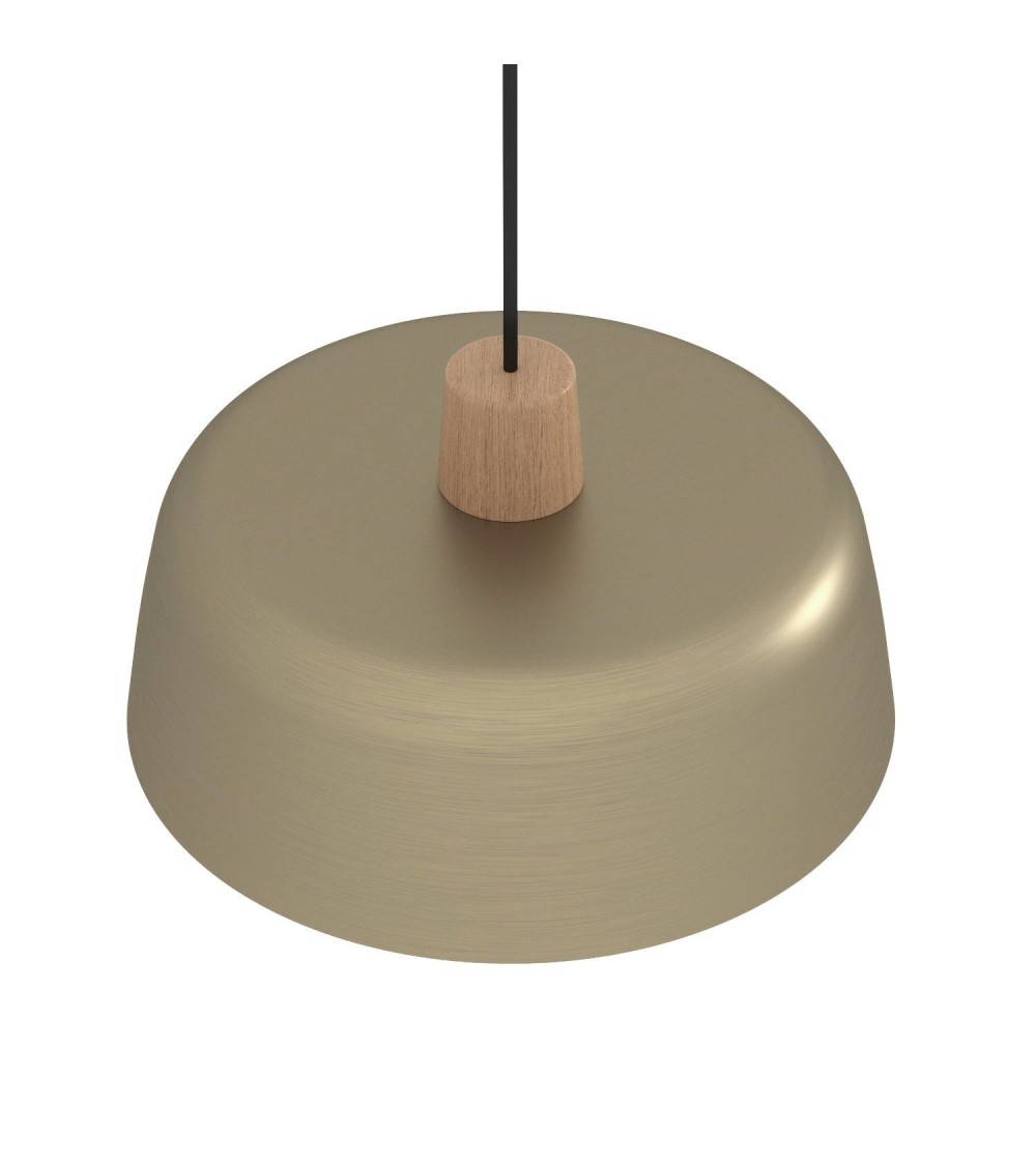 Suspension design Modena, en métal or et détail en bois clair dhévéaAvec des lignes organiques dune grande simplicité, mais un abat-jour éclatant qui mêle métal doré et bois dhévéa, la suspension design Modena ne peut pas passer inaperçue. Dessiné pour hisser votre intérieur vers une déco de charme, ce luminaire suspension en métal or est lallié dun style précieux et raffiné. Une inspiration brillante pour la maison?!Métal orBois dhévéa clairAbat-jour : 32 x 15,5 cmLongueur maximale : 120 cm (câble ajustable)Dorée, la suspension luminaire devient une pièce maîtresseQuand on vous dit que la décoration dun appartement ou dune maison reflète votre personnalité?! Avec la lampe suspension Modena or, limage parle davantage quun long discours : élégance raffinée, amour des éléments décoratifs précieux, atmosphère douillette et hospitalière simposent comme une évidence. Au premier coup dil, vos proches nauront aucun doute sur votre capacité à faire des choix sûrs et réussis pour votre intérieur. Ce lustre design à lallure intemporelle assagit son abat-jour éclatant avec une sobriété extrême de sa silhouette et un bois dhévéa clair placé sur son sommet. Cela fait de lui une suspension luminaire idéale pour rehausser le cachet de votre pièce.Modena, une suspension au design puissantLe luminaire design Modena confère une énergie fascinante à votre décor, dont tout le monde profite de jour comme de nuit. Tout à fait adaptée pour léclairage principal dune cuisine, dun salon, dune salle à manger, la longueur réglable de cette suspension en métal permet les jeux de lumière autour de la table et des chaises de salle à manger. Quand vous tenez un petit bijou comme celui-ci, amusez-vous avec les mises en scène?! Fixez ce luminaire suspension or en plusieurs exemplaires au plafond du couloir ou dune mezzanine. Réglez-le à faible hauteur au-dessus des tabourets de bar de?lîlot de cuisine pour créer un espace de convivialité.