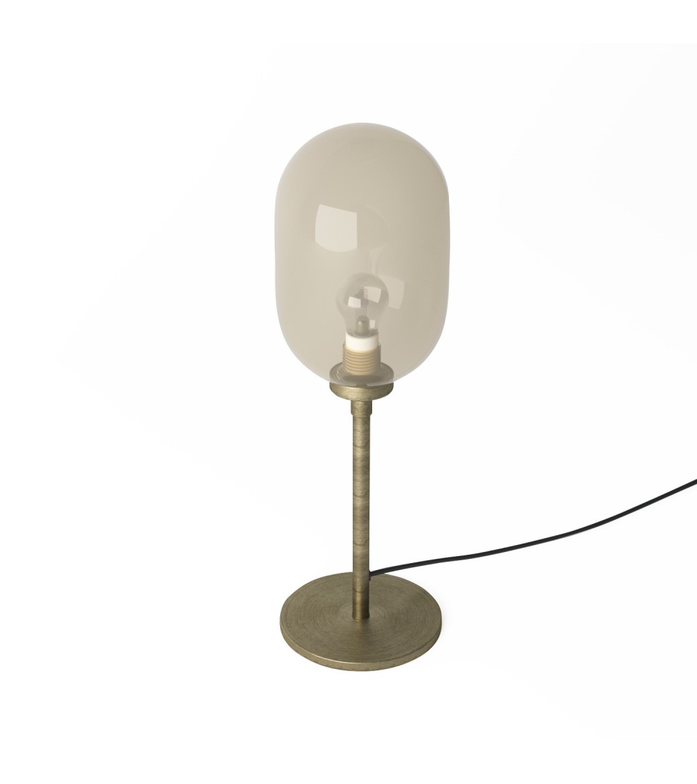 Lampe à poser en métal et verreEnvie dune source lumineuse à la fois glamour et design ? Offrez-vous la lampe à poser Messina constituée dun pied en métal doré vieilli et dune cloche en verre fumé jaune. La base possède un socle circulaire et une fine tige élancée. Vous pouvez linstaller où bon vous semble, au salon, sur votre chevet ou dans une entrée. Ce luminaire fonctionne avec une ampoule LED (non fournie).Base en métal or patinéCloche en verre fuméHauteur : 39 cmCloche en verre : l 12 x H 18 cmLampe à poser Messina : source lumineuse dappointAvec votre lampe à poser Messina, créez une ambiance boudoir et feutrée dans votre intérieur. Vous invitez votre meilleure amie ? La douce lumière tamisée due à la cloche en verre fumé jaune et sa lampe LED est propice à la confidence. Vous rentrez du travail et vous aspirez au calme et à lapaisement pour les yeux ? Cette source lumineuse dappoint est suffisante pour y voir, sans agresser visuellement.La lampe Messina trouve aisément sa place dans un coin de votre salon, près de votre canapé, posée sur une table dappoint. Elle accueille avec grâce vos convives ou les membres de votre famille quand elle est installée dans lentrée, sur une console ou un buffet. Dans votre chambre, elle se transforme en très jolie lampe de chevet. Lampe en verre fumé et métal or patiné Pied en métal doré vieilli, fin et élancé, globe en verre fumé jaune, ne trouvez-vous pas que la lampe à poser Messina est dune élégance folle ? Ce contraste de design épuré et de teintes chaudes nous plonge au début du XXe siècle dans une ambiance Art Déco. Vous pouvez cependant associer votre lampe au style vintage, moderne ou contemporain.Complétez votre décoration intérieure avec des objets et accessoires possédant eux-aussi une touche dorée. Ainsi, le miroir Firenze est du plus bel effet aux côtés de la lampe Messina. Dans lentrée, celle-ci fait sensation en compagnie du porte-manteau Jules ou de la patère murale Salvador.