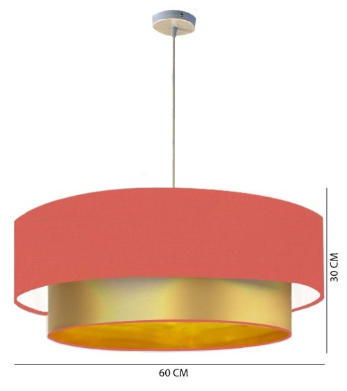 Produits à usage professionnels et particuliers. La double suspension laqué or est l'accessoire de décoration idéal pour apporter une touche de modernité et d'élégance dans votre intérieur. Elle est composée d'un abat-jour en percaline et d'un abat-jour en PVC Laqué Or Intérieur et Extérieur, créant ainsi une belle harmonie de couleurs. Elle peut être installée au-dessus d'une table de salle à manger, dans une cuisine ou même dans un salon. Avec un diamètre de 60cm et une hauteur de 20cm pour l'abat-jour extérieur, et un diamètre de 50cm et une hauteur de 30cm pour l'abat-jour or, cette double suspension offre une taille idéale pour une grande pièce. La fixation fournie pour permetre une installation facile, le type d'ampoule à utiliser est avec culot E27. Cette suspension est à une utiliser en intérieur uniquement.