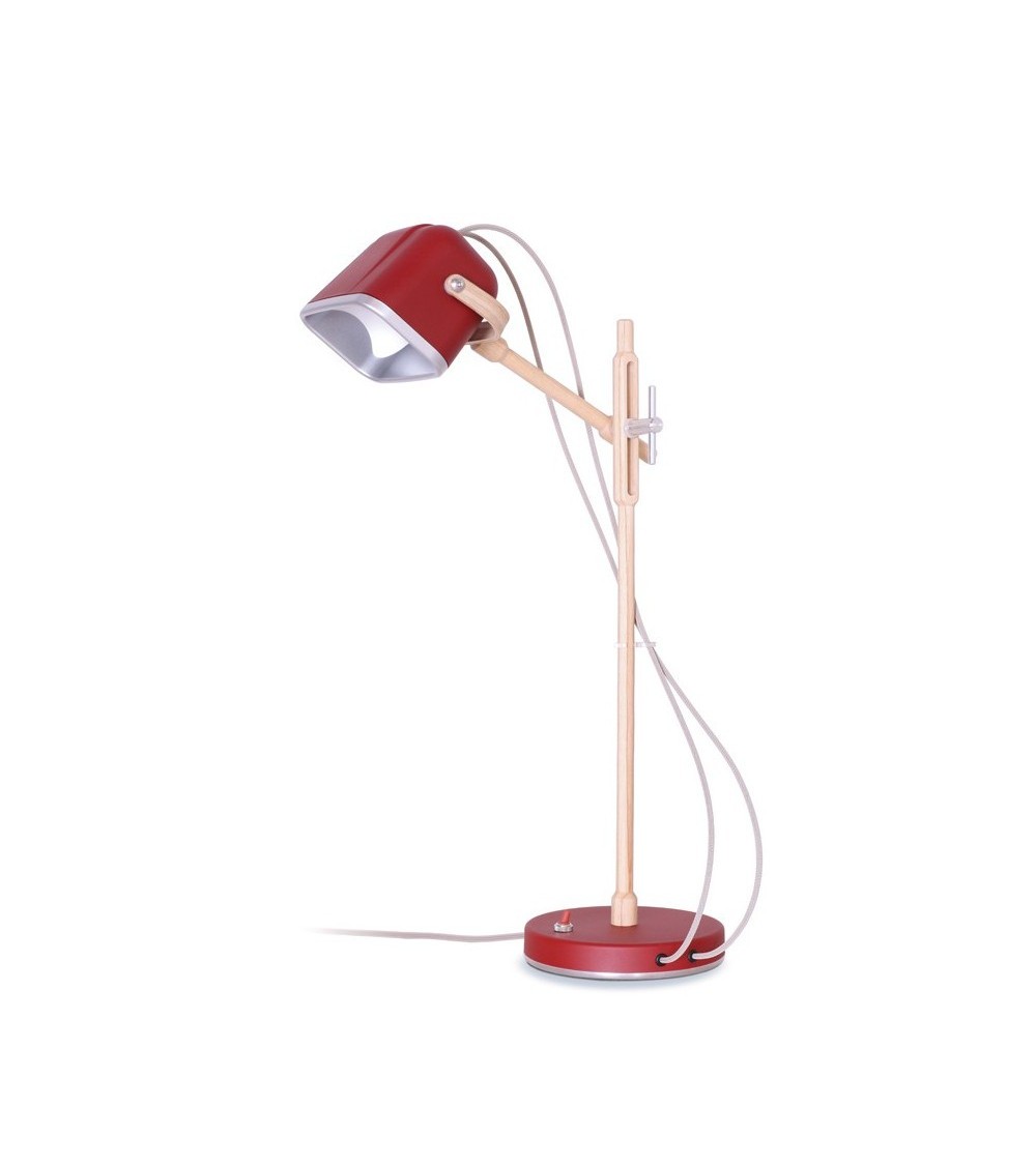 Lampe à poser rouge et bois H60cm