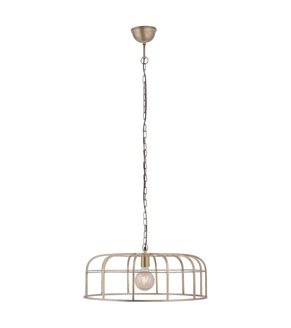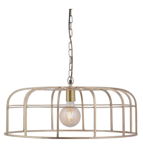 La suspension FREDERIK est une très belle suspension cage de 58 cm de diamètre. Elle viendra habiller la plafond des pièces de vie avec une jolie note solaire grâce sa finition couleur laiton mat qui réfléchit la lumière émise. Epurée de tout superflu, cette suspension dorée peut se marier avec tous les styles déco et s'installer dans n'importe quelle pièce de la maison. Même dans une cuisine, le métal étant très facile à nettoyer. On l'imagine très bien dans une chambre raffinée ou un salon bohème. Mais elle se fondra aussi parfaitement dans un décor industriel moderne pour lui apporter une touche de couleur chaude.Notre conseil : l'associer avec une ampoule Led à filament de couleur blanc chaud pour parfaire son esprit déco très chaleureux.Cette suspension est compatible avec une ampoule E27 x 25W.Dimensions : hauteur 120 cm x diamètre 58 cm. Hauteur réglable. Les plus du produit : Matériau résistant - Effets lumineux - Ampoule à personnaliser Caractéristiques : - Douille : E27 - Puissance : 25W - IP : 20 - Matière : metal