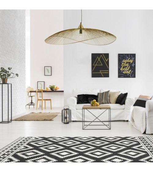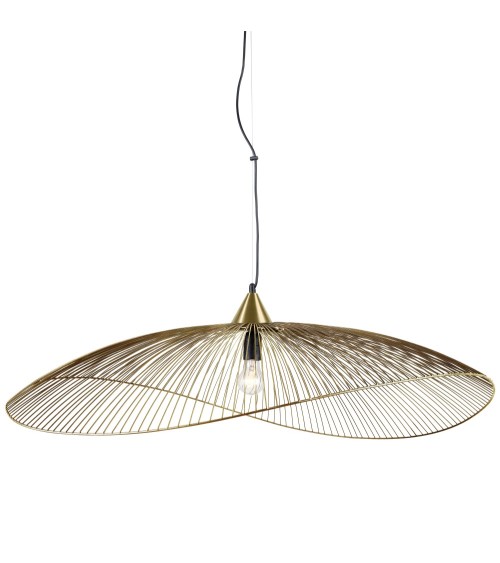 Complètement à la pointe des dernières tendances, cette suspension design SAWYER sublimera sans aucun doute votre aménagement intérieur. Conçue en métal coloris laiton, elle marie à merveille un style filaire totalement dans l'air du temps et une élégance folle. Avec un diamètre XXL de 100cm de long, ce très beau luminaire arbore une allure épurée et apportera un charme fou dans votre décoration intérieure. Sa structure simplement composée de fils métalliques dorés laisse ainsi apparaître l'ampoule qu'on vous conseille de choisir à filaments pour renforcer son esprit chic industriel. Selon votre angle de vue, vous obtiendrez une symétrie parfaite du design de cette suspension avec des lignes légèrement ondulées pour jouer la touche graphique. On l'imagine parfaitement au-dessus d'une belle table à manger pour accompagner vos moments en famille ou entre amis, ou bien au cur de votre salon pour instaurer une ambiance chaleureuse irrésistible. Ce luminaire vous fera profiter d'un éclairage harmonieux et agréable au quotidien. Il dispose d'une douille E27 compatible avec une ampoule d'une puissance maximale de 40W (ampoule non incluse). Existe également en coloris noir ou blanc. Les plus du produit : Effets lumineux - Suspension XXL - Matériau résistant Caractéristiques : - Douille : E27 - Puissance : 40W - IP : 20 - Matière : metal