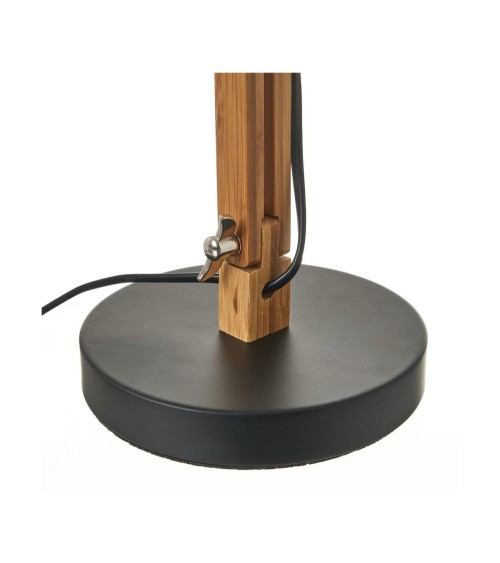 Lampe de bureau en métal noir et bambou articulée. Câble noir de 150cm.Dimensions: Hauteur 40.5cm x Longueur 37cm x largeur 16cmAmpoule: E27/11W (non fournie)Couleur: Noir et BoisMatière: Bambou, Métal