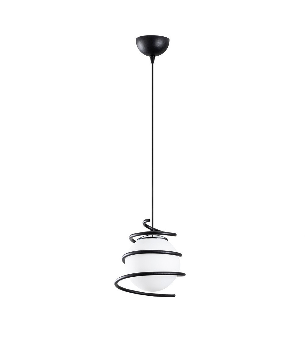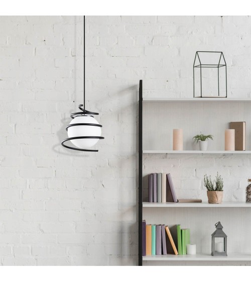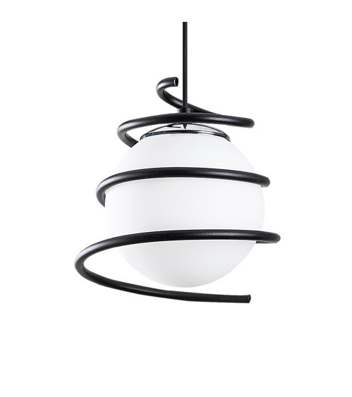Suspension sphère en verre blanc entouré d'une spirale noire