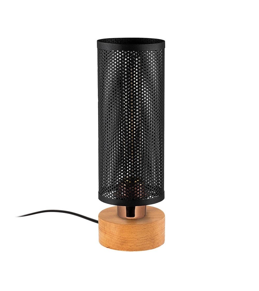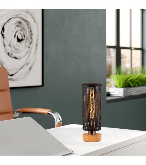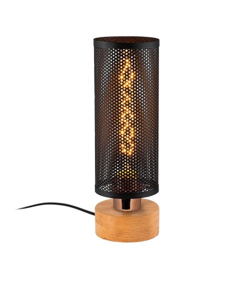 Lampe de table moderne avec base en bois et écran en maille métallique