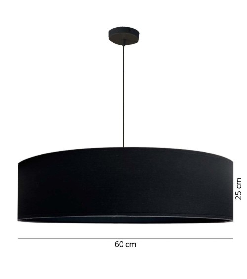 Produits à usage professionnels et particuliers. La suspension noir intérieur noir est un accessoire de décoration de qualité supérieure, fabriqué avec du tissu noir en polycoton et un intérieur imprimé noir. Cette suspension offre une touche de modernité et de classe à n'importe quelle pièce de la maison. Cet abat-jour est opaque et une fois éclairé, son intérieur noir reflète la lumière pour créer une ambiance chaleureuse. Elle convient parfaitement pour éclairer un salon, une chambre ou une salle à manger. Avec un diamètre de 60cm et une hauteur de 25 cm, cette suspension est fournie avec un câble d'alimentation noir de 80 cm réglable en hauteur. L'ampoule n'est pas fournie. La suspension noir intérieur noir apportera une touche de modernité et de classe à votre décoration intérieure.