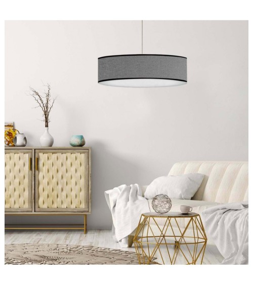 Produits à usage professionnels et particuliers. La suspension Eclat est un accessoire décoratif incontournable pour ceux qui cherchent à illuminer leur intérieur avec style. Composée d'un abat-jour de 60 cm de diamètre et de 25 cm de hauteur, cette suspension en tissu imprimé est idéale pour mettre en valeur votre espace de vie et créer une ambiance chaleureuse. Les bordures imprimées noires confèrent à la suspension une élégance sans pareil. Cette suspension est fabriquée en tissu imprimé de haute qualité, ce qui lui donne un éclat et une durabilité exceptionnels. Elle est fournie avec un diffuseur pour tamiser la lumière et son câble d'alimentation de 80 cm est réglable en hauteur. Il est prévu pour accueillir une ampoule avec un culot E27 et est destiné à un usage intérieur uniquement.