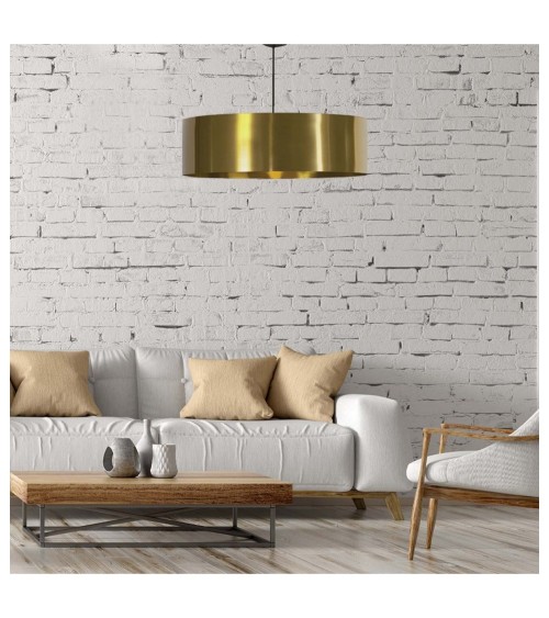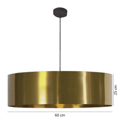 Abat-jour suspension en pvc laqué or intérieur et extérieur Abat-jour adapté pour une décoration de chambre, salon, bureau etc.  Abat-jour opaque, en pvc laqué métallisé, idéal pour créer une lumière d'ambiance dans votre intérieur Abat-jour tendance or à suspendre.  Dimensions : Diamètre 60 cm x  Hauteur 25 cm Fournie avec son câble d'alimentation de 80cm réglable en hauteur et sa platine en métal. Fixation pour douille E27 Fabriqué dans nos ateliers de Roubaix