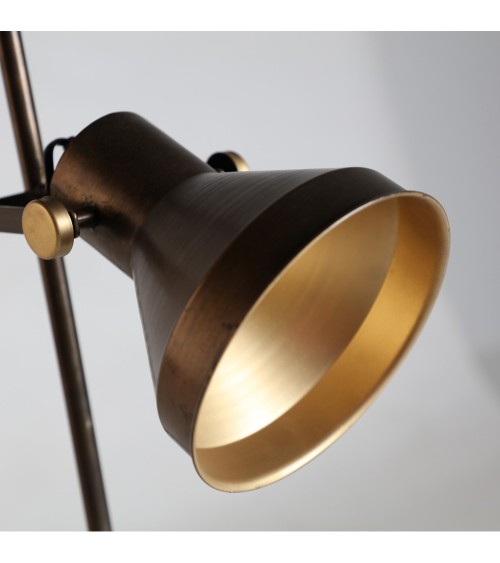 Éclairez votre espace avec de lélégance ! Lampadaire pied fabriquée en métal de couleur bronze, inspirée du style Art déco. Sa forme simple avec une finition vieillie va doter lespace où elle se trouve de polyvalence. Elle peut contenir 3 ampoules de 40W et sa taille est de 46xx42x160 cm.
