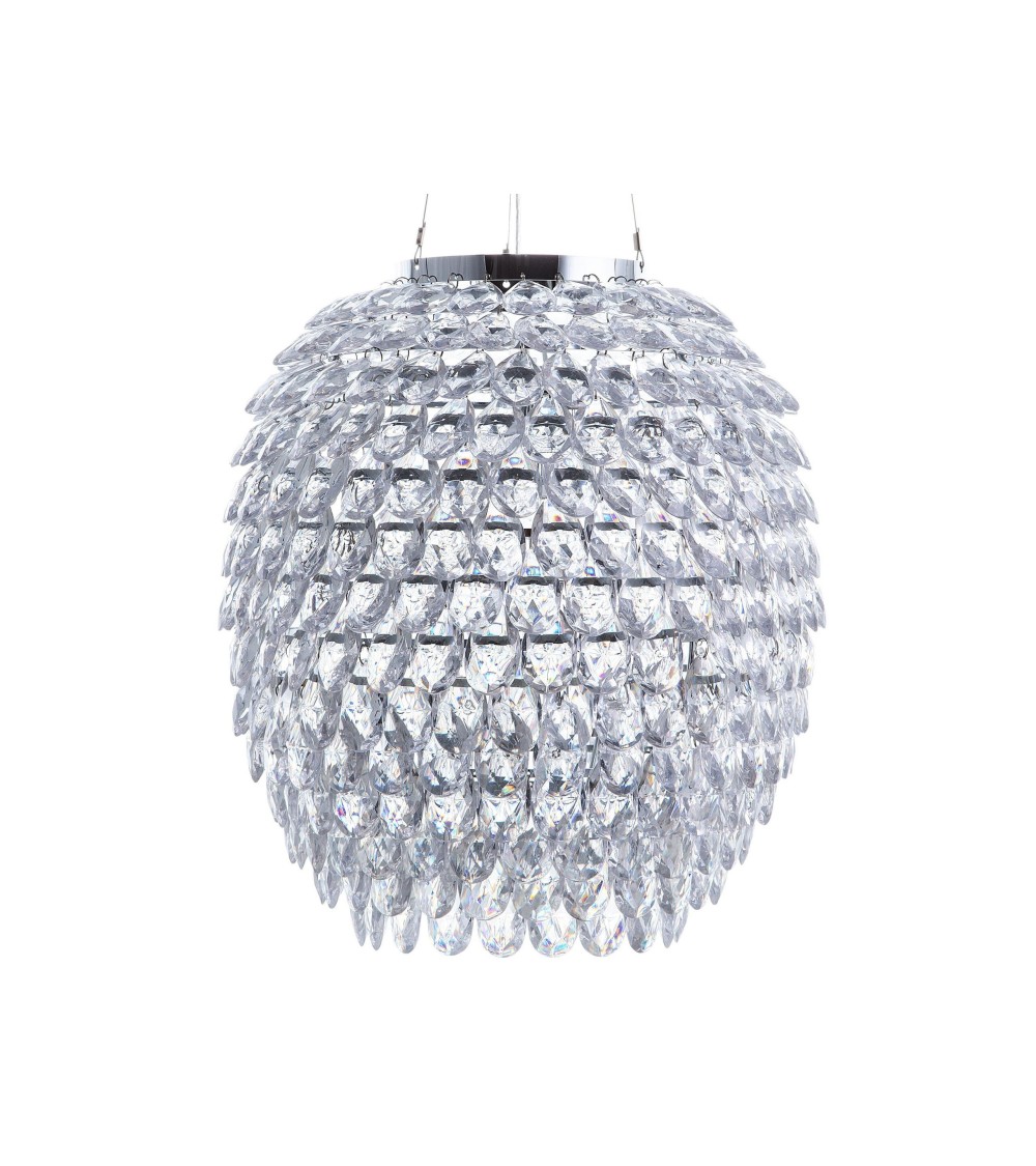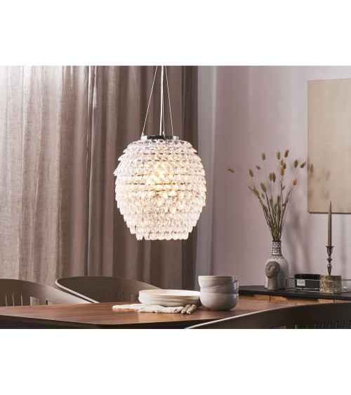 Cette lampe suspendue chic et décorative apportera un style glamour à votre intérieur. La structure de l'abat-jour de forme ovale est en métal argenté, décoré de nombreux cristaux transparents qui créent un effet d'éclairage étonnant. Les éléments brillants reflètent la lumière et créent une atmosphère élégante dans la pièce. La lampe est adaptée aux ampoules E27 avec un maximum de 60W. Les ampoules ne sont pas incluses.