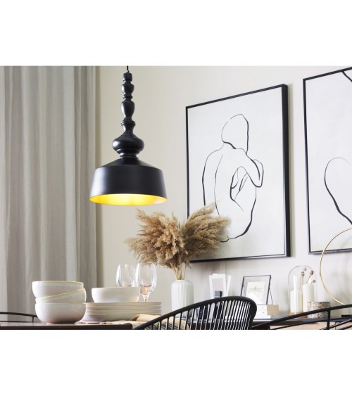 Cette lampe suspension moderne de couleur noire et une décoration originale s'adaptant à tout style de décoration. Fabriqué en métal, la découpe imite le bois avec une véritable finition de menuisier, donnant ainsi un style typiquement rustique. Son design et ses couleurs élégantes, elle pourra également s'adapter à n'importe quel style et trouvera sa place dans n'importe quelle pièce d'intérieur. La lampe est fournie avec un câble noir et la lampe est adaptée pour aux ampoules E27 avec un maximum de 40W. L'ampoule n'est pas incluse dans l'offre.