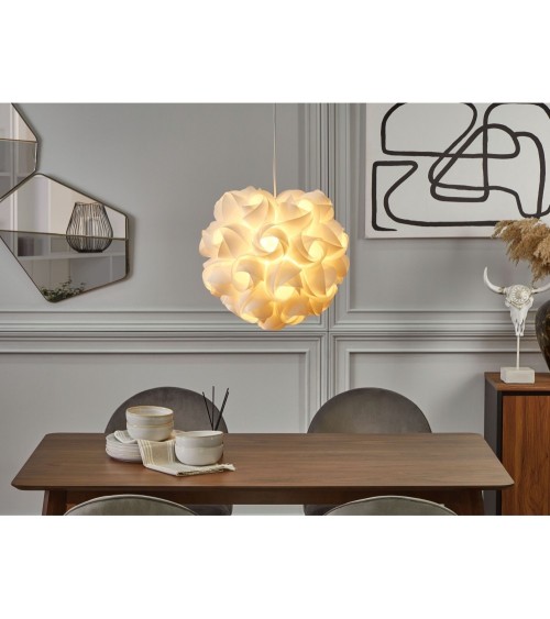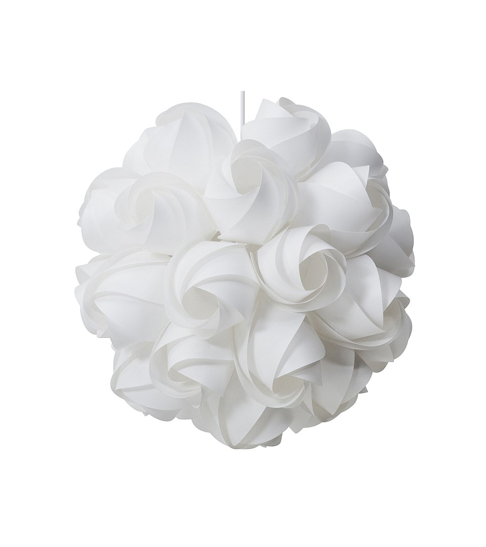 Lampe de plafond design haut de gamme. Cette lampe suspendue très élégante est l'assemblage de nombreuses feuilles de plastique enroulées et liées les unes aux autres qui donnera ainsi l'aspect d'un bouquet de rose pendu à votre plafond. L'assemblage complexe de l'abat-jour vous offrira des effets lumineux et un éclairage unique. De plus, en utilisant une ampoule en couleur au lieu dune ampoule standard, tu vas te mettre en bonne humeur.Détails: Type de produit: Lampe suspension Style: Moderne Couleur principale: Blanc Type de matière: Matériaux synthétiques Matière principale: Matière synthétique Matière de l`abat-jour: Matière synthétique Forme: Difforme Puissance: Max. 40W Ampoules requises: 1 Dimensions: Longueur du cable: 125 cm Profondeur: 47 cm Largeur: 47 cm Hauteur: 180 cm Poids: 3 kg L`offre inclue: 1 x Lampe de plafond, Non inclus : ampoule Caractéristiques clés: Se combine parfaitement avec une lumière ambiante, Style élégant, En harmonie avec n'importe quel type de décoration, Matières robustes faciles à entretenir, Efficacité énergétique optimale, Une conception solide et une excellente finition Informations d`assemblage: Installation requise. 45 - 60 min Informations supplémentaires: La lampe est conçue pour les ampoules d'efficacité comprise entre les catégories A à G, sur une échelle de A (la plus efficace en énergie) à G (la moins efficace). Convient pour les LED, les halogènes et les ampoules éconergétiques. Tout ajustement de la longueur du câble doit être effectué par un électricien. Conseils de maintenance: Matière synthétique: 1.Nettoyez avec un chiffon et un détergent doux, essuyez bien ensuite.