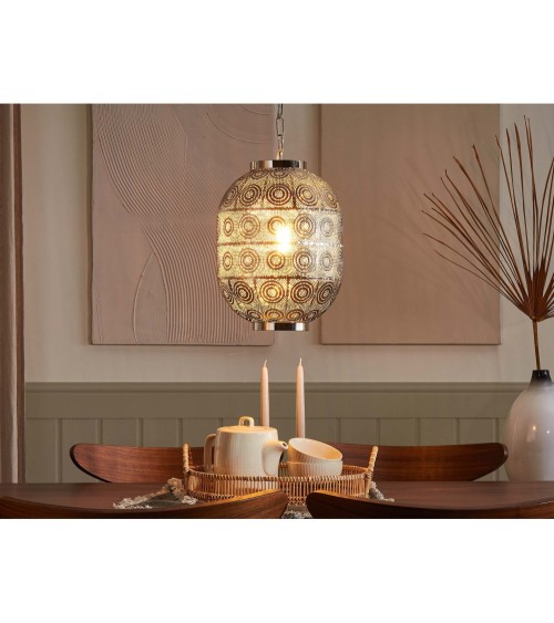 Enrichissez votre décor avec une nouvelle pièce de design d'inspiration marocaine. La silhouette tout en courbes de la lampe présente de beaux détails perforés, ce qui fera d'elle l'élément de décor le plus captivant de votre intérieur. Avec le motif en métal, la lumière est reflétée et apportera une lumière tamisée à votre intérieur. Ce luminaire s'intègre bien dans les intérieurs du type moderne et vintage, à placer au-dessus de votre table à manger ou dans votre salon.
