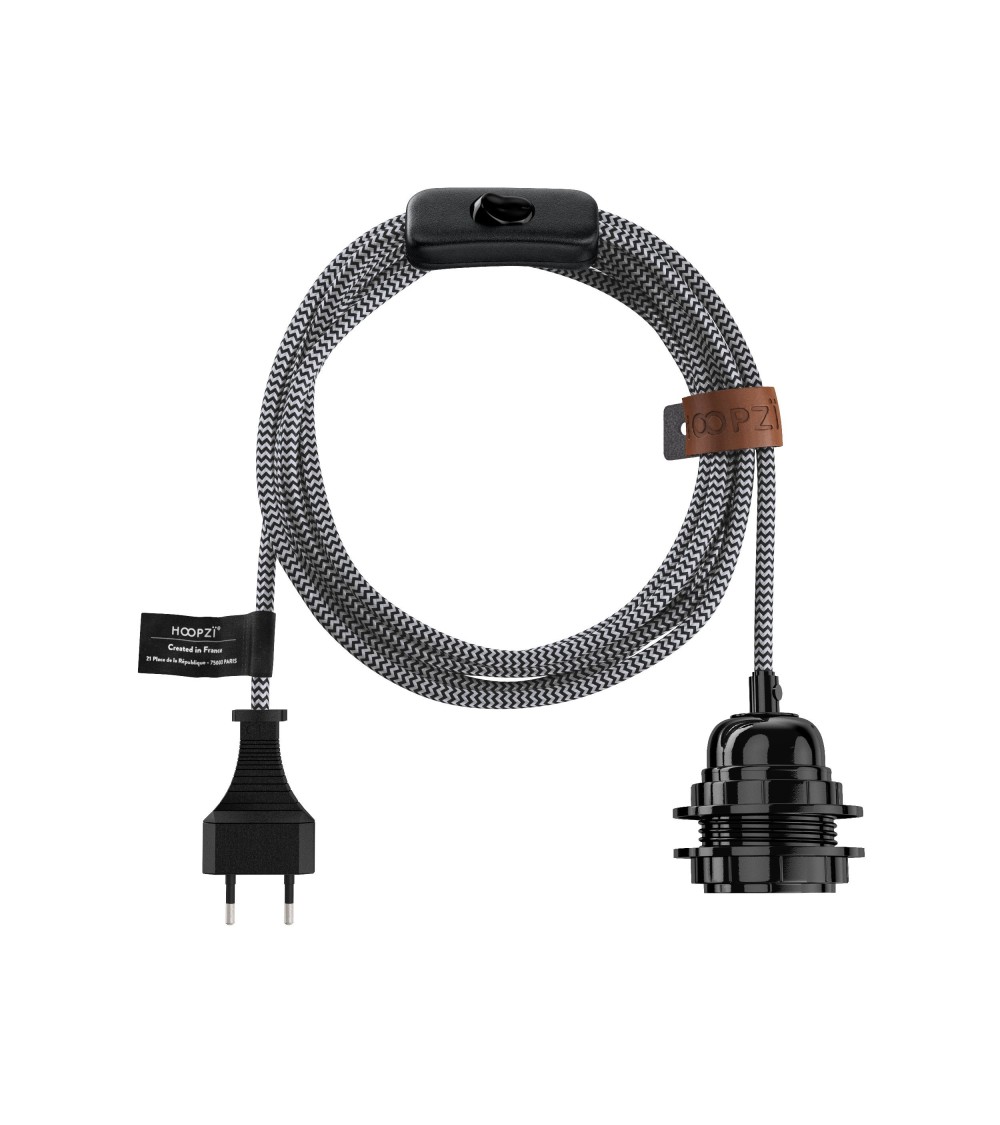 Vous êtes DIYer, décorateur intérieur, passionné de fabrication dabat-jour, ou fana de déco, Hoopzi vous donne une liberté de création nouvelle qui vous amusera et éclairera votre créativité !Notre concept :1. Choisissez votre base 2. Choisissez vos accessoires 3. Branchez, et éclairez votre créativitéDans la boite :1 x Câble électrique Bala de 4,5 mètres,1 x Crochet acier avec cheville plastique,1 x Manuel en Français, INSTALLER SANS PERCER : Branchez, ajustez, profitez, QUALITÉ : Douille en bakélite premium et câble en tissu luxueux, TRANSFORMEZ : Passez d'une lampe de table à une suspension ou applique en quelques instants, SÉCURITÉ : Respect des normes électriques françaises, nos produits sont certifiés par un organisme indépendant,-DONNEZ DU PEPS À VOTRE DÉCO : Bala est l'objet décoration par excellence, 4,5 mètres de câble coloré pour laisser votre imagination sexprimer. Utilisable dans toutes les pièces de votre maison : salon, cuisine, chambre, bureau, garage.-CRÉEZ ET CUSTOMISEZ : La douille E27 démontable vous permet de sectionner le cordon électrique à la dimension souhaitée. Enroulez ou faites passer le câble dans une étagère, un meuble, une poutre, un pied de lampe.-ACCESSOIRISEZ : Avec les Supports Hoopzi, créez une étagère lumineuse ou une applique murale originale. Réalisez une forme ou un texte au mur.