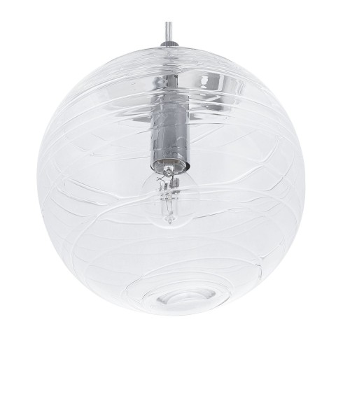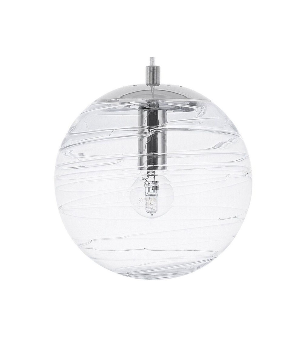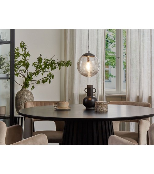 Le verre transparent de l'abat-jour sphérique apporte une lueur élégante dans chaque pièce. Les rainures transversales, qui donnent un relief intéressant à cette lampe, procurent en même temps des effets lumineux excitants. Le design s'harmonise avec des intérieurs sophistiqués et convient à des styles de vie élégants, classiques et modernes. La lampe est adaptée pour les ampoules E14 avec un maximum de 40W. L'ampoule n'est pas incluse.