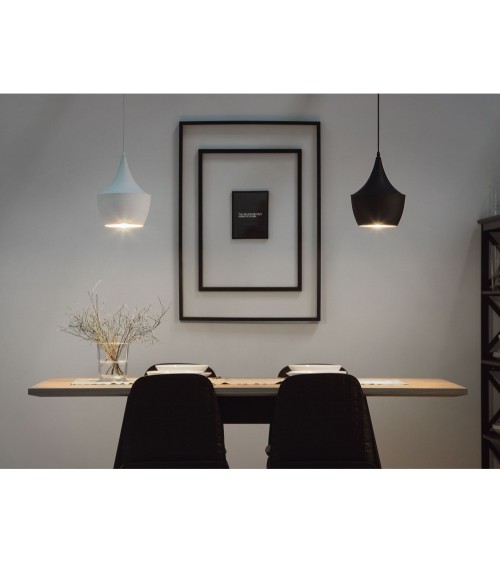 Un design branché, un éclairage d'ambiance idéal au-dessus de votre table à manger. Cette lampe suspension en aluminium aux formes épurées attire l'attention de tout le monde. De couleur blanche à l'extérieur et à l'intérieur un éclat doré qui diffuse une lumière chaleureuse. Adaptées aux ampoules E27 avec un maximum de 60W. Les ampoules ne sont pas incluses dans l'offre.