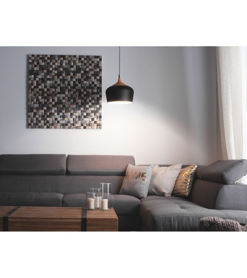 Une lampe suspension qui donnera des idées décoratives lumineuses ! Fabriqué en aluminium noir et en bois sur le dessus, l'abat-jour est à la fois robuste et décoratif. Ses formes épurées et sa combinaison de couleurs et de matériaux, en font un bijou du style rustique. La lampe suspension est adaptée aux ampoules E27 avec un maximum de 60W. L'ampoule n'est pas incluse.